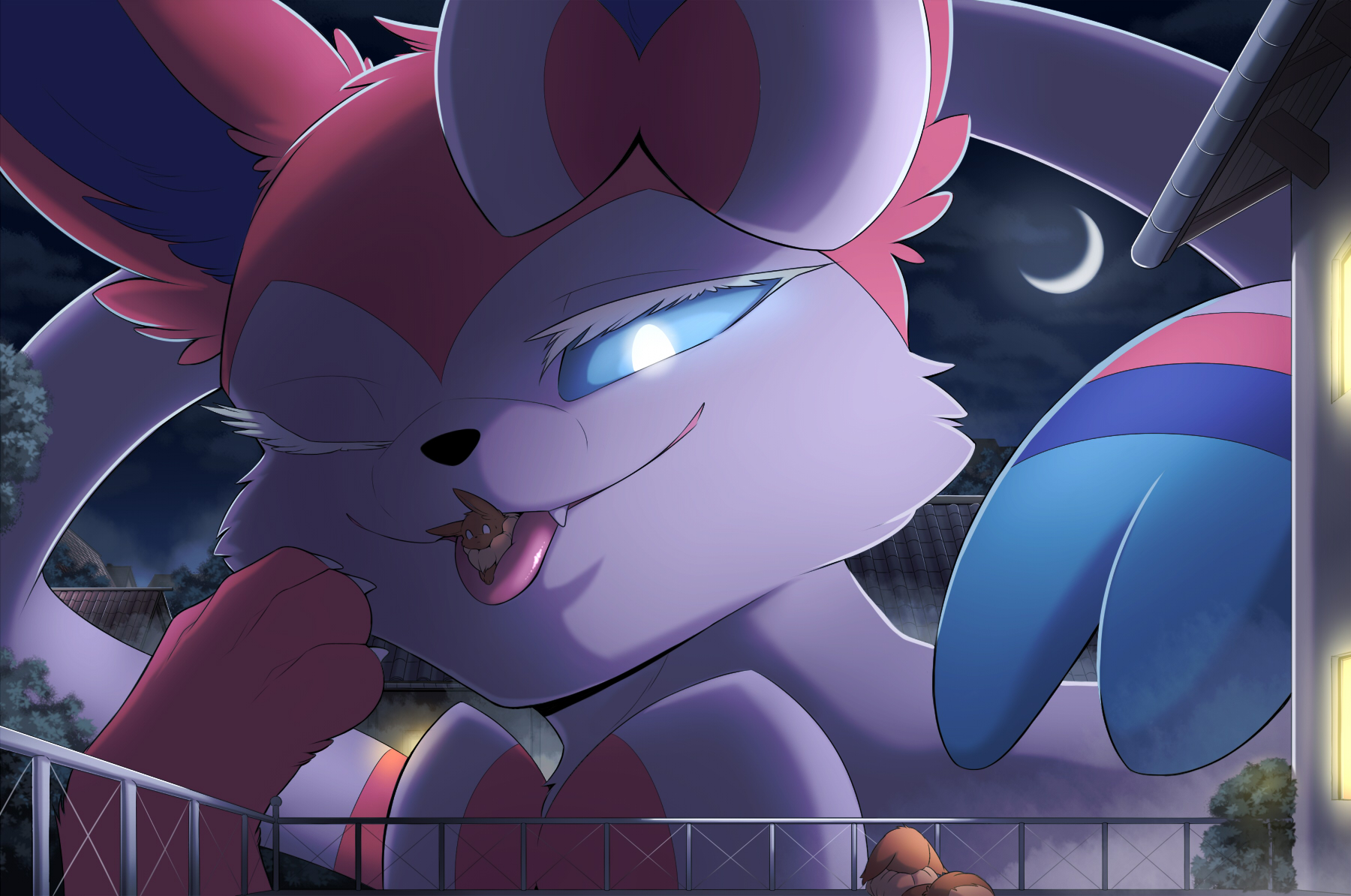 >>58522060Requesting a Sylveon using it's front paws to hold it's trainer against it's head/cheeks as it happily nuzzles/cuddles them (Not sure if the ribbons can also be worked into this somehow), with the trainer struggling in trying to get free.(Guess that's what happens when you max out affection with the "Intertwining Pokémon" known to become super-friendly with it's trainer, and then said trainer shrinks...)