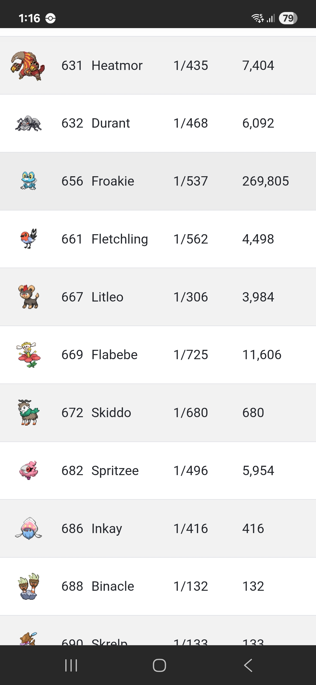 Got my first random full odds last night AND it's a Kalos shiny I didn't have, very exiting