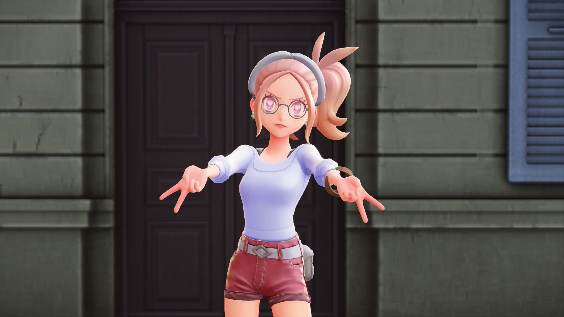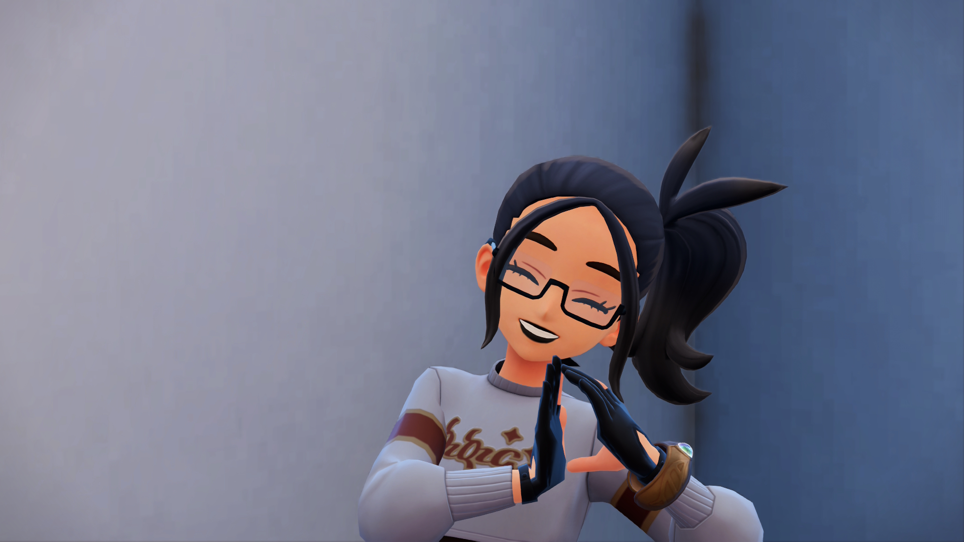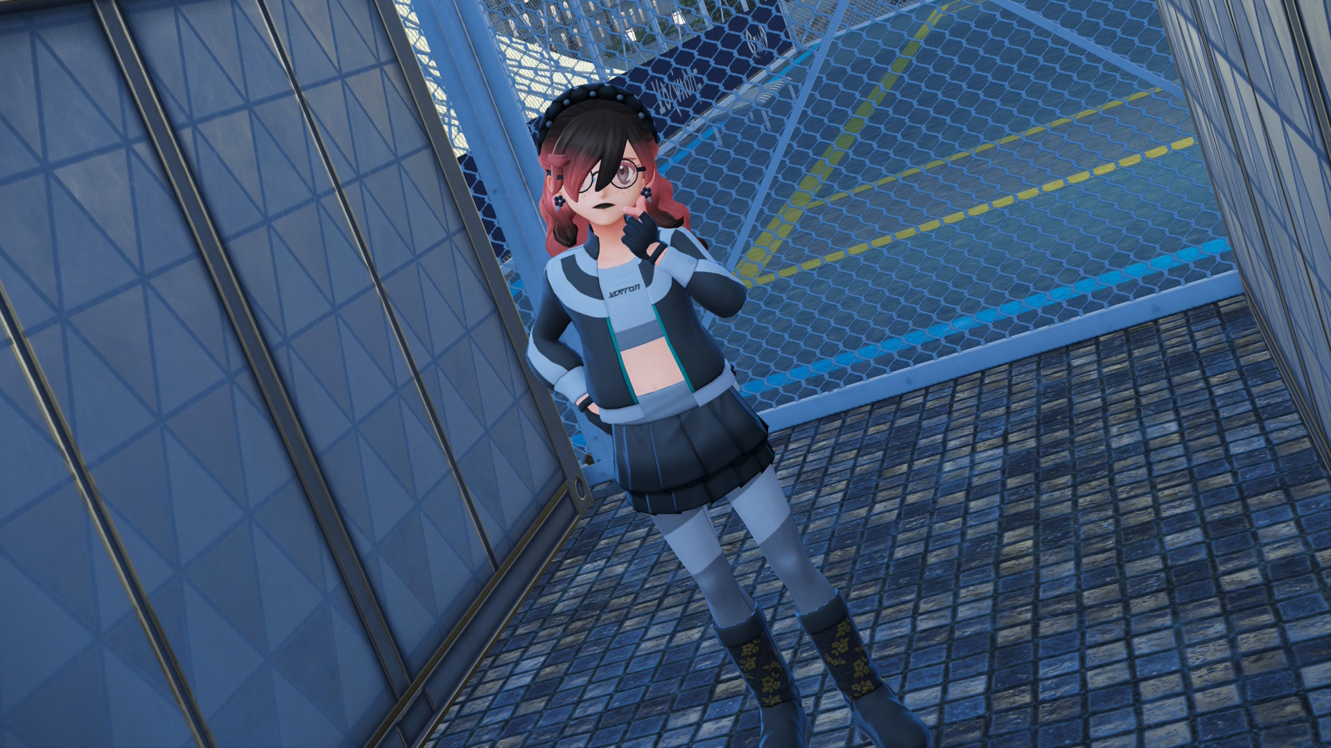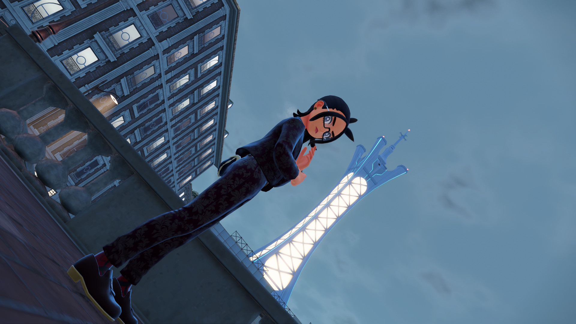 I had her wearing the mirror shades but I took them off because they look a bit too goofy. The customization is great but I'd love more hairstyles.