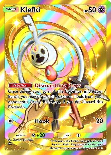 Why the fuck Klefki the gold card? Its a fucking worse Guzma. Only affects the opponents active and you discard it if you use the ability What the fuck were they thinking?