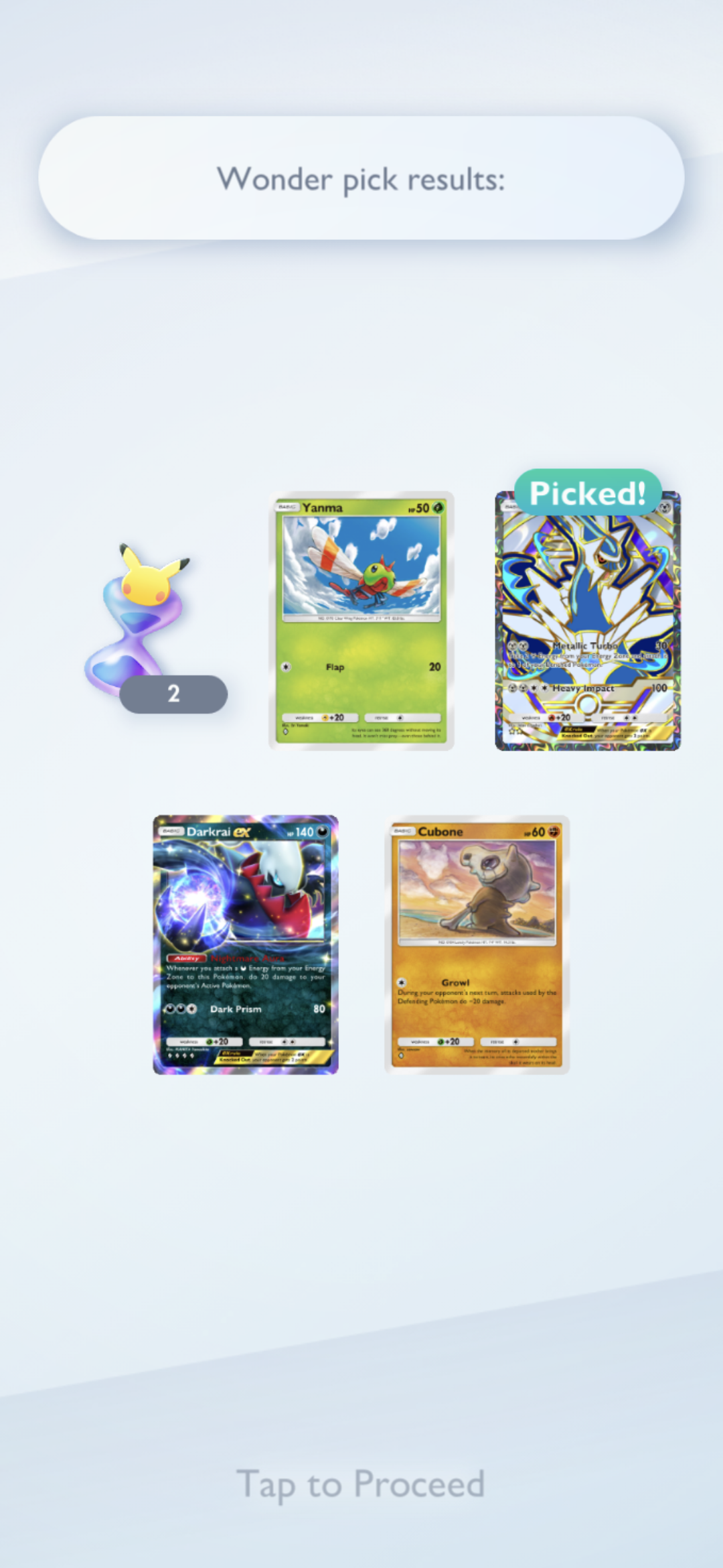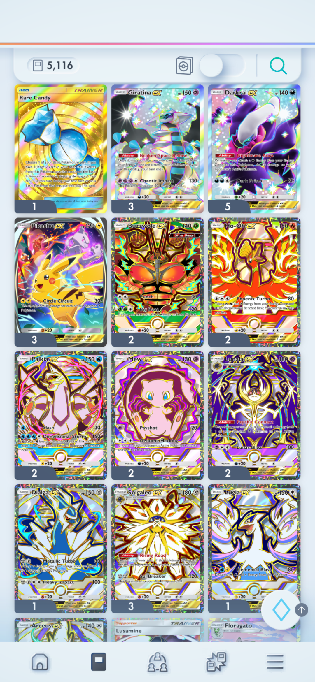 141 packs got me:Ho-oh, Palkia, Pika, Mewtwo, Arceus, Lusa, Immersive Pika, 2 Giratina, 2 DarkraiTrash luck. As usual, no waifu card.
