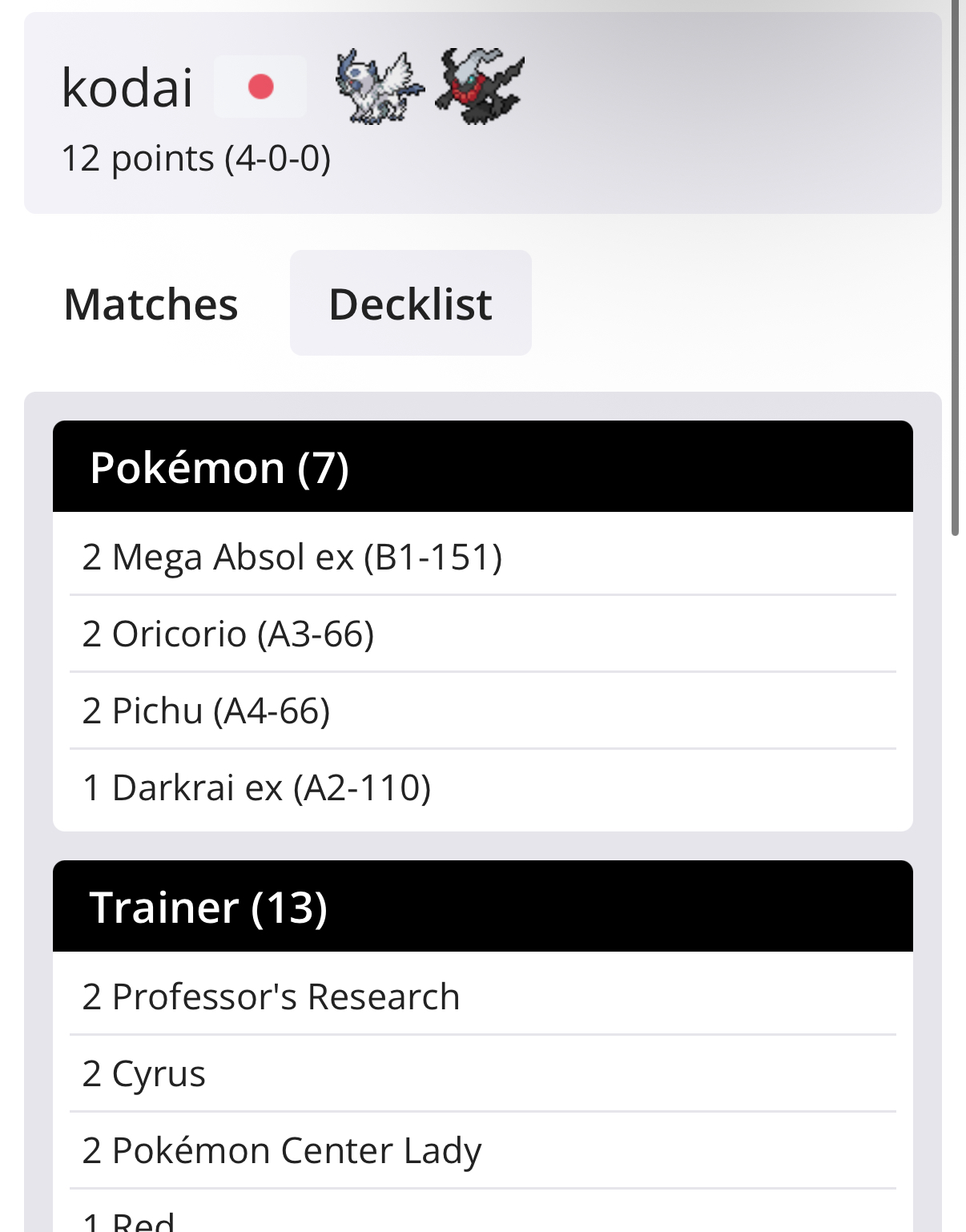 DeNA be rolling in dough Edition>Friend ID Survey: https://forms.gle/AZyQQ2SfGeCKjXNh9>Friend ID Sheet: https://docs.google.com/spreadsheets/d/1DGhOfaMX6D_YUR-P39_OJdVmAl0uacohIRstE9oN9SQ/edit?usp=sharing>Tournament results/decklists: https://play.limitlesstcg.com/tournaments/completed?game=POCKET>Deck Builder: https://my.limitlesstcg.com/builder>Datamines, etc.: https://ptcgp.raenonx.cc/en>Luck calculator: https://porygonthree.github.io/ptcgp-luck-calculator/>Advanced Card search: https://pocket.limitlesstcg.com/advanced>Deluxe Pack: ex card list: https://www.pokemon-zone.com/sets/a4b/>Mega Rising soon: https://www.pokemon-zone.com/sets/b1//vp/ battle passwords to battle with other Anons (consider writing a post to recruit players)>/vp/‘s own meta (no random effects, no ex): vpnx>meta decks or high level play: vpmeta>/vp/ anything: vpPrevious Thread: >>58534060