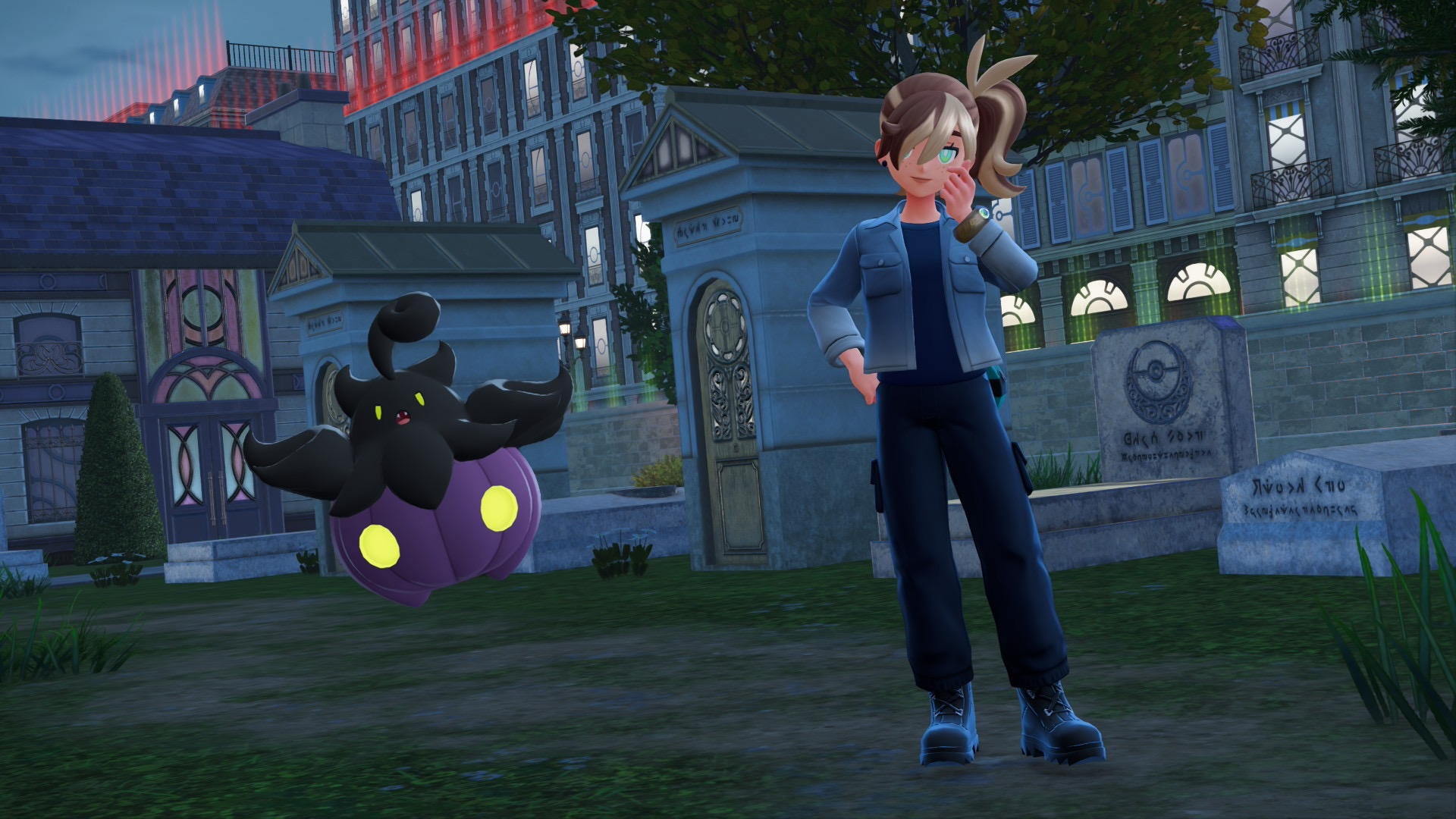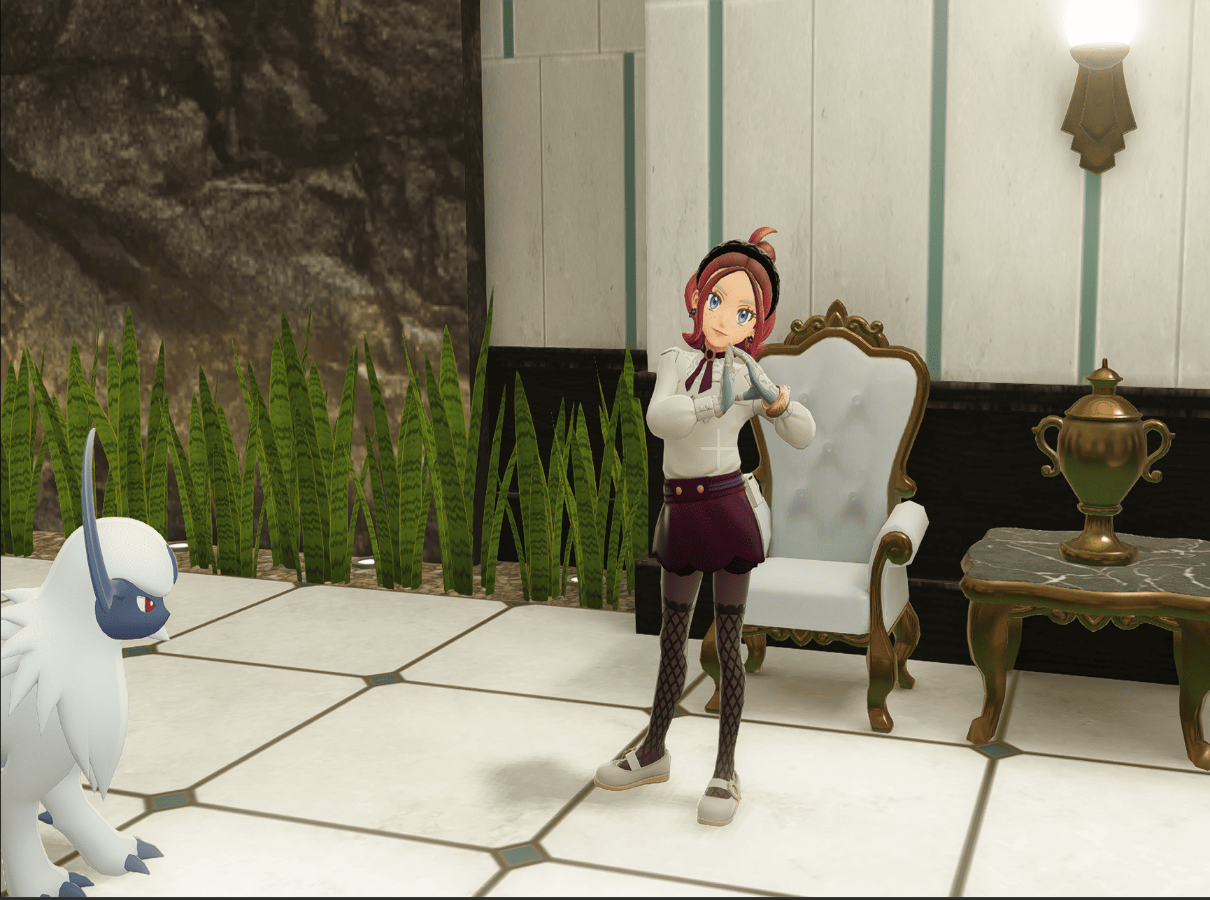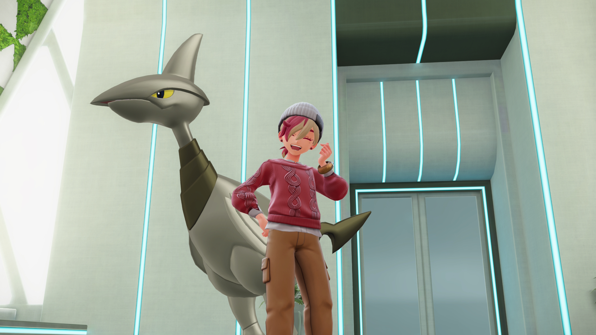 >>58542558Golurk but he's not here yet so here's a SV screenshot of him, my Indeedee duo and my SV trainer