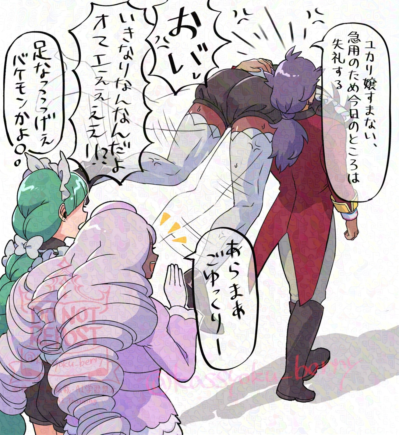 Jacinthe and Lebanne’s color schemes complement eachother really well, I think this every time I see art of them. You can tell they were designed for each other, even though it’s not my thing.