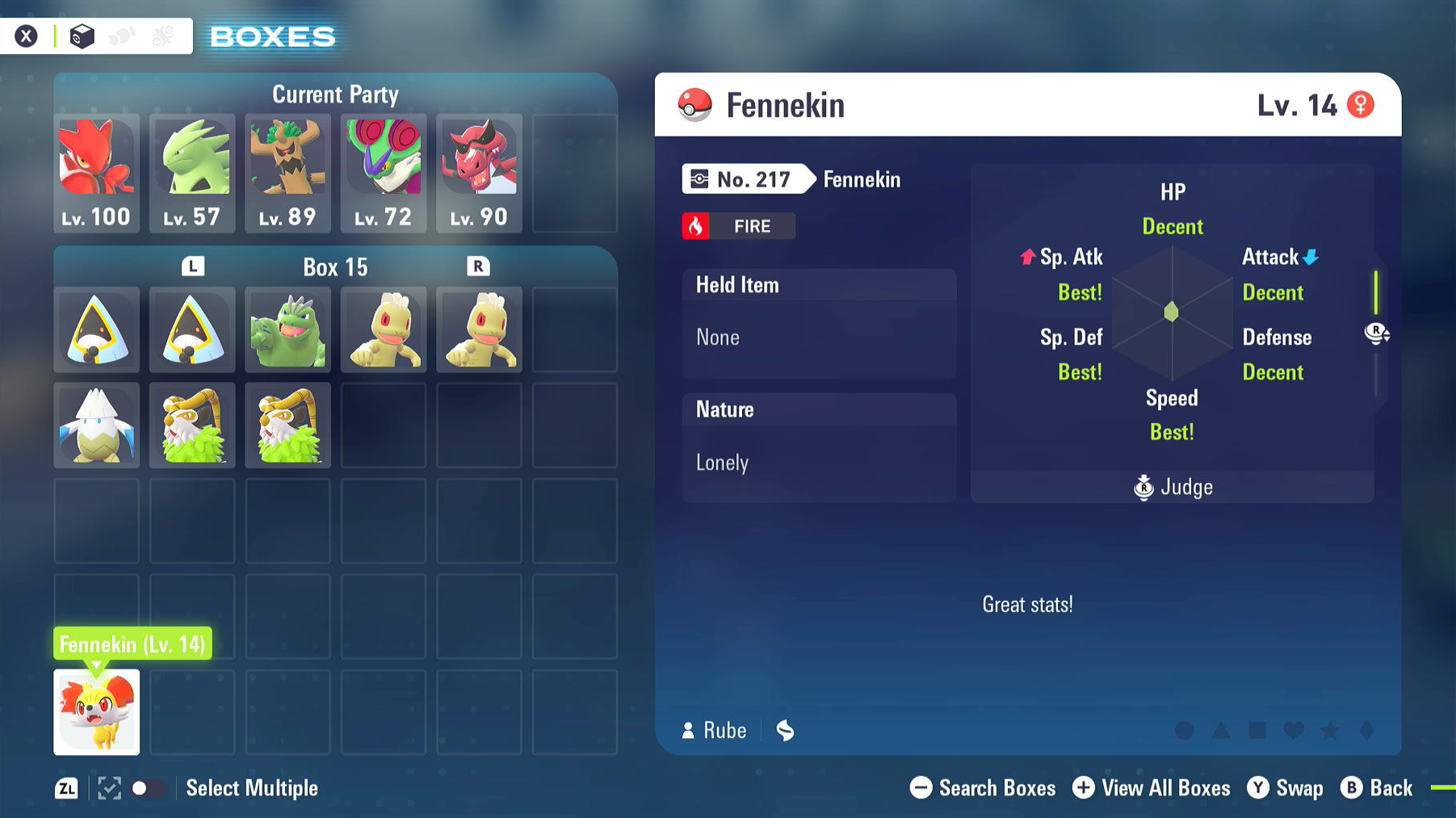 Willing to trade everything in this box for anything in return.None of these are Alphas and both snorunts are men. As for the Fennikin, she was three perfect IVs and I'd like her to have a nice home. Please reply if you are interested. It's better than releasing, I suppose.