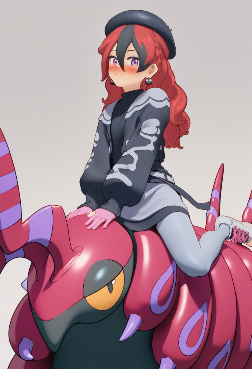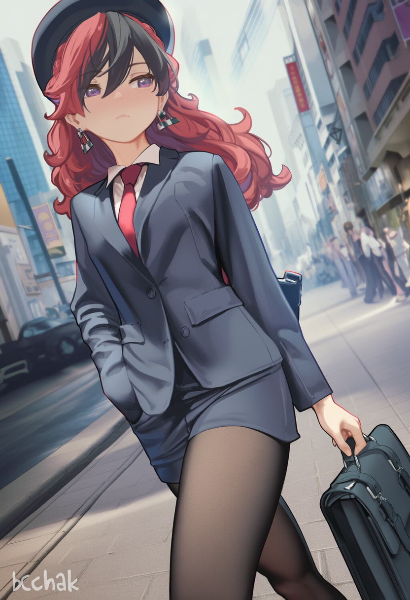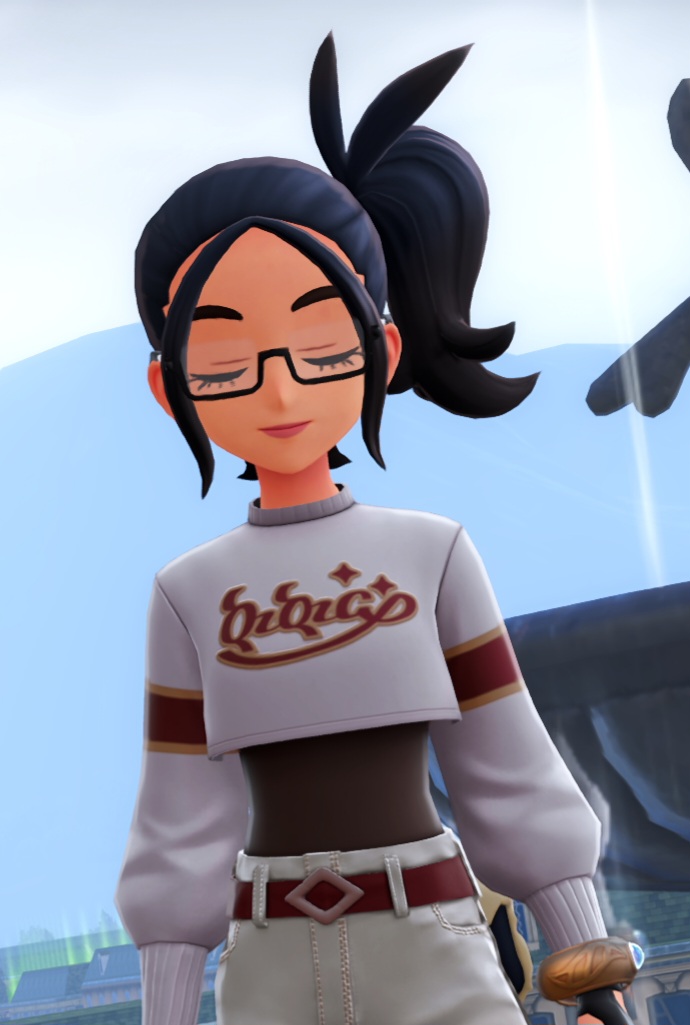 I finally managed to make my card with whatever I had on hand, since I still don’t have internet — and transferring files to the PC is pure hell.> Encounter Themehttps://youtu.be/msqlYLg0ac8?si=n34nyFZxuE2JzY6QUsually, she’s the one who finds you, mainly because you never know what appearance she’ll have at that moment. Inspired by Majima Everywhere’s mechanic, she waits for you in random places to challenge you to a battle. Her team isn’t even strong — they just match her outfit.>Opening Dialogue:Traineeeer~~~! I hope this isn’t a bad time, but seriously, you have to check out this amazing style and these Pokémon!> Battle Themehttps://youtu.be/AIXONAm-G4g?si=z8yCMftZje2jV-hz>When you defeat her:Oh wow! You’re really strong!... Please… keep it up... ~>If she defeats you:Oops… it’s fine. Everyone has a bad day — just get up and become stronger soon!In the final battle, everything changes — she no longer uses random Pokémon; she brings out her real team. She looks genuinely excited, as she’s been waiting for this battle for a long time, she wears her normal clothes and shows her true self.>Final Encounter Themehttps://youtu.be/jtQTJWhnv-o?si=yDT1_T_NrQ9t6IzG> “Betrayal” is such an ugly word. I prefer to call it “helping you” until you were ready — for the moment when you could finally become a true hero! Every step, every wound, every victory… they were all pieces to make you strong enough to save the city… no, the entire world! You just have to prove to me that we didn’t waste our time, hero!>Final Battle Themehttps://youtu.be/vO76X80GTBE?si=FXEtZozREMriG7Z9>When you defeat her:Finally… a true hero… Now, at last, everything is over.>If she defeats you:With a disappointed expressionMe…? Whatever. You’re not the first, and you won’t be the lastOh yeah — blogposting, just because I canNow that I let all the cringe out, I can finally sleep better.