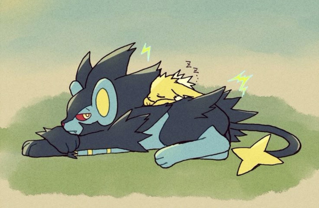 >The first thing he registered was the smell.>Antiseptic like bleach and stale air.>The steady beeping of a heart monitor came next, until it became increasingly loud.>Kurt surfaced from the heavy fog of unconsciousness to a world of dull, throbbing misery.>His left arm, though, was a special kind of awful.>A deep, resonant ache throbbed from shoulder to fingertips, one that wanted to agonizingly burn but was muted by what he assumed were painkillers.>He blinked sluggishly as the hospital room swam into focus.>It was dark, save for the glow of the monitor and the light from the hall that swam through the door’s tiny window.>To his left was a cot-side table, on top of which was a small ‘get well soon’ card depicting a dog in a cone of shame with the caption ‘At least you don’t need to wear one of these’.>It was cracked open so it could stand on its own, and Kurt could barely peek at the signature. From Emma. >Kurt snorted, failing to hold back a small grin. What a dork.>Shifting to the right, he saw a large, familiar black and blue form curled up, opting to sleep on the floor rather than the cheap visitor’s chair.>Larson looked rough. He was dotted with bald patches from now-treated burns, and had various cuts and nicks from both claw and bite wounds all sutured and wrapped.>Kurt tried to sit up, but the movement was a mistake.>A jolt of blinding magma shot up his arm, causing him to let out a reptilian hiss that cut the silence in the room.>Larson’s ears twitched, and his pair of glowing yellow and red eyes blinked open in the darkness.>Larson was up in an instant, claws softly clacking against the floor as he limped over to the side of Kurt’s cot.>The Luxray regarded him with exhausted and anxious eyes. Kurt released a breath he didn’t realize he was holding.>At least Larson was ok.