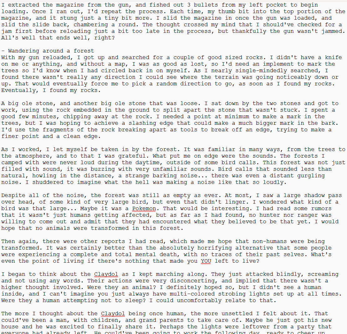 Tossing my hat into the ring. I like ghost types, so here's a prologue for my story. I don't have a name for it yethttps://rentry.org/cb24k1ti(Might be influenced a little bit by Faith the Unholy Trinity. I finished that for Halloween and really liked it)