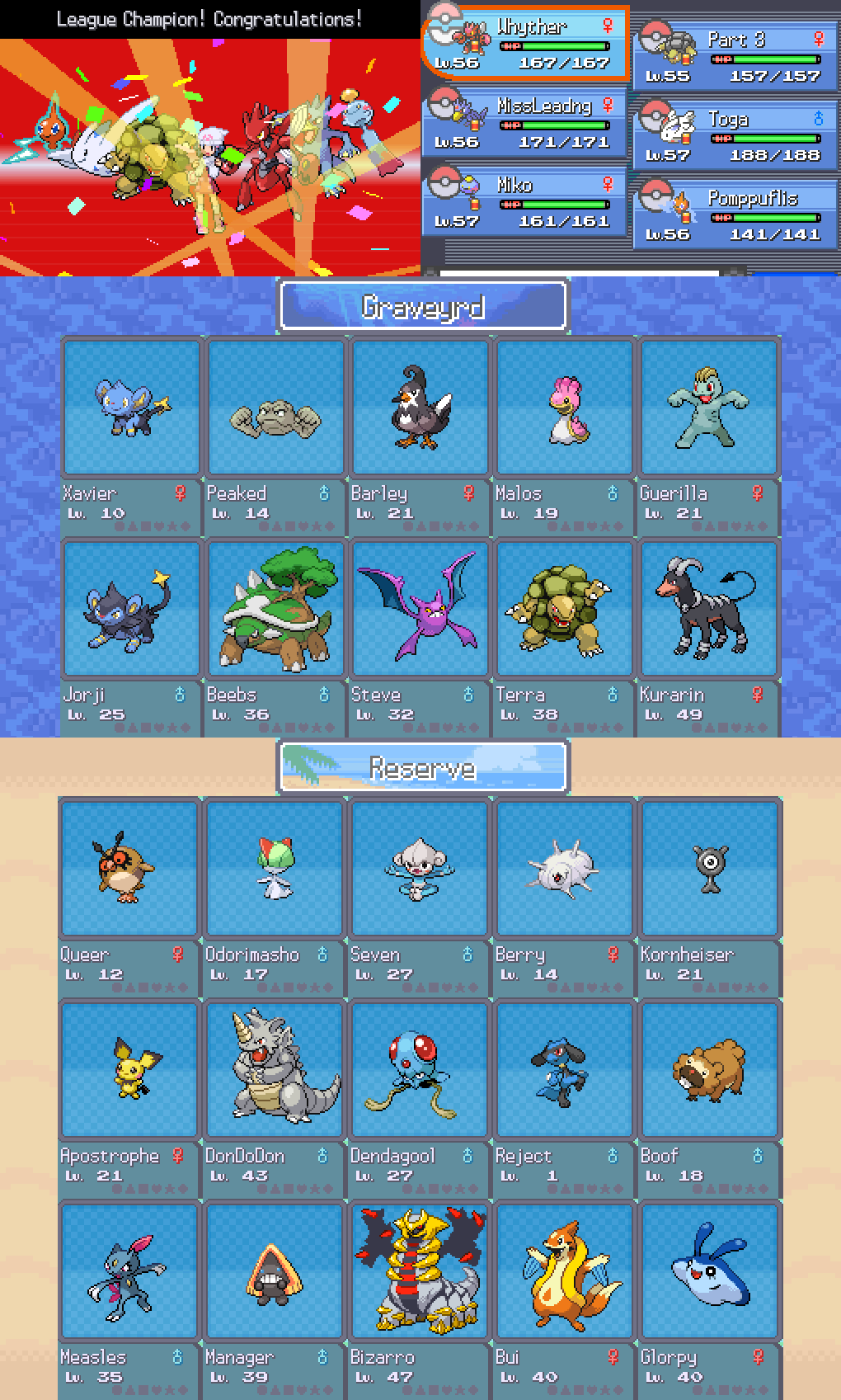 I was using a banette and crobat to steal comet shards in white 2, so I named them delinquent and duo respectively