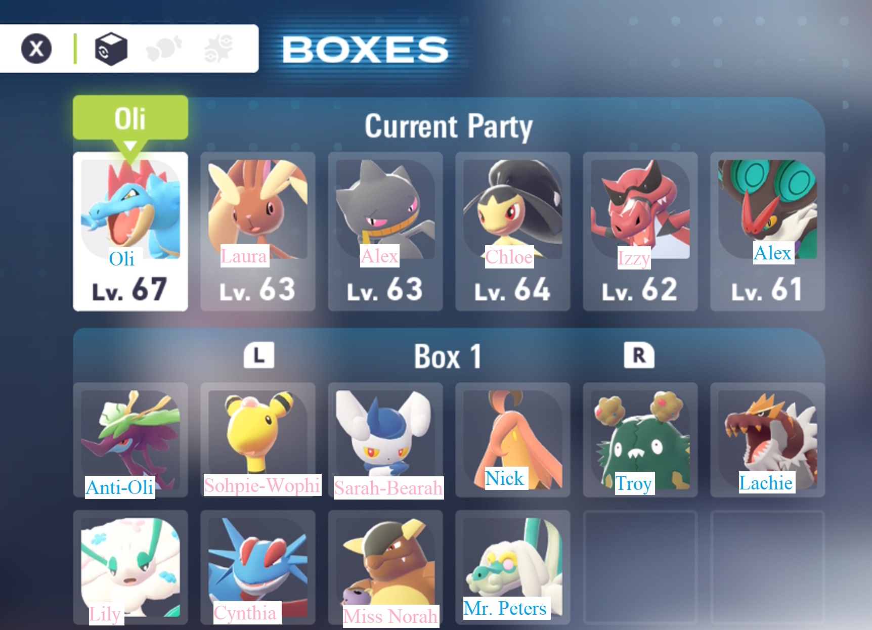 My Z-A team's names were themed after plants however.