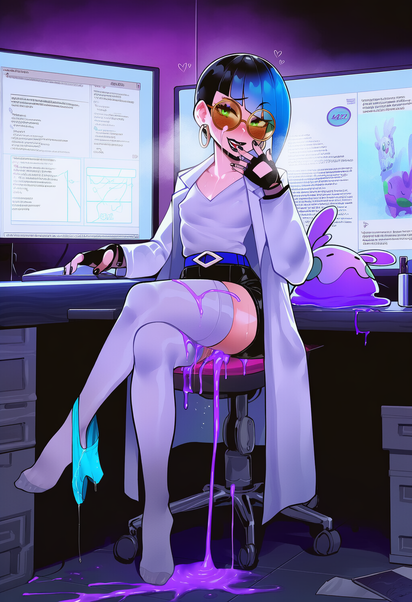 >>58593547>>58593579>>58593910Working on it>>58593916I wonder how watersports would be received in this thread. Azarose the bedwetter...>>58593677I can certainly try>>58593752That's my field of specialty! If you'd ever like lessons or a demonstration, please stop by the lab>>58593772>>58593775W-what?! That's preposterous! We have a very close perso- I mean PROFESSIONAL relationship and nothing scandalous that could potentially tarnish the reputation of the lab or Director Mable has ever happened!>>58593858I'm sorry to hear that! It must have been awful outside for your kind to be feeling the chillNow, as for the interns. As you know, I adore the entire Goomy line. As such, I have a... moderately sized breeding facility set up in one of the unused areas of the lab. Some ruckus on the streets caused a temporary power outage and well... they took the opportunity to roam. So, I sent Candy and Sunny down to round the little buggers up. Seems they got a bit sidetracked though, so I inevitably had to handle it myselfhttps://catbox.moe/c/05yfyo