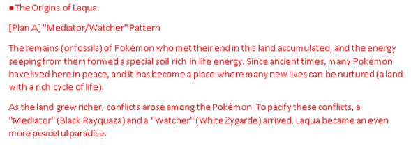 >>58630991From my understanding, the original idea was that Rakua was an island of sort (I'm not sure whether it was connected to anything else) overflowing with life energy and that it was guarded by Zygarde and Rayquaza. When the original Explorers arrived there, Gibeon attempted to control Zygarde, which didn't go well because Zygarde started rampaging, causing destruction everywhere. Then Terapagos synchronized its powers with 18 different Pokemon, creating a barrier to protect the island as it sunk underwater.Rakua was originally supposed to be underwater ruins, but they changed it to some mountain peak or whatever, which is way more boring imo.