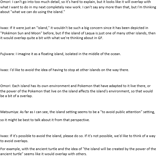 >>58631256These behind-the-scenes discussions are so interesting. I would love to see stuff like this from other anipoke series too, I'd love to know what was going through their head when they were planning certain things.
