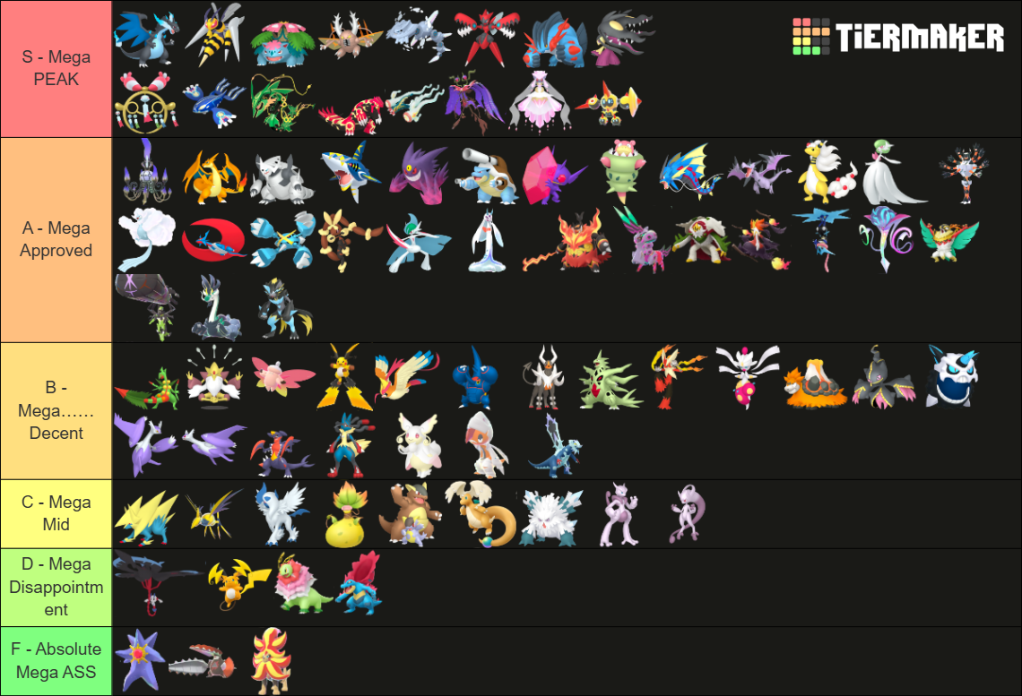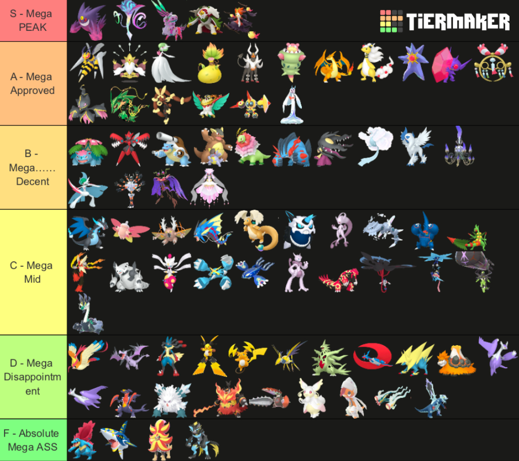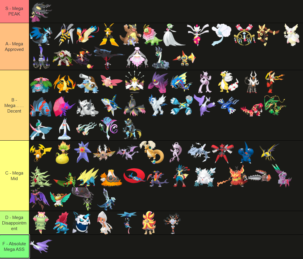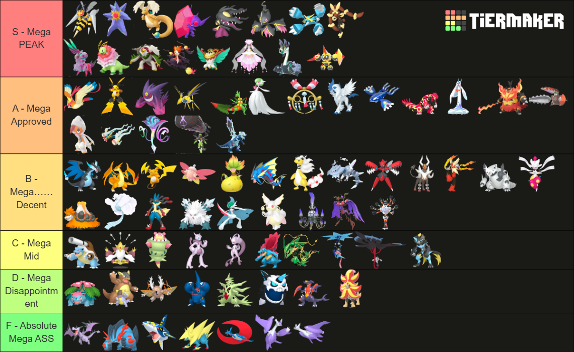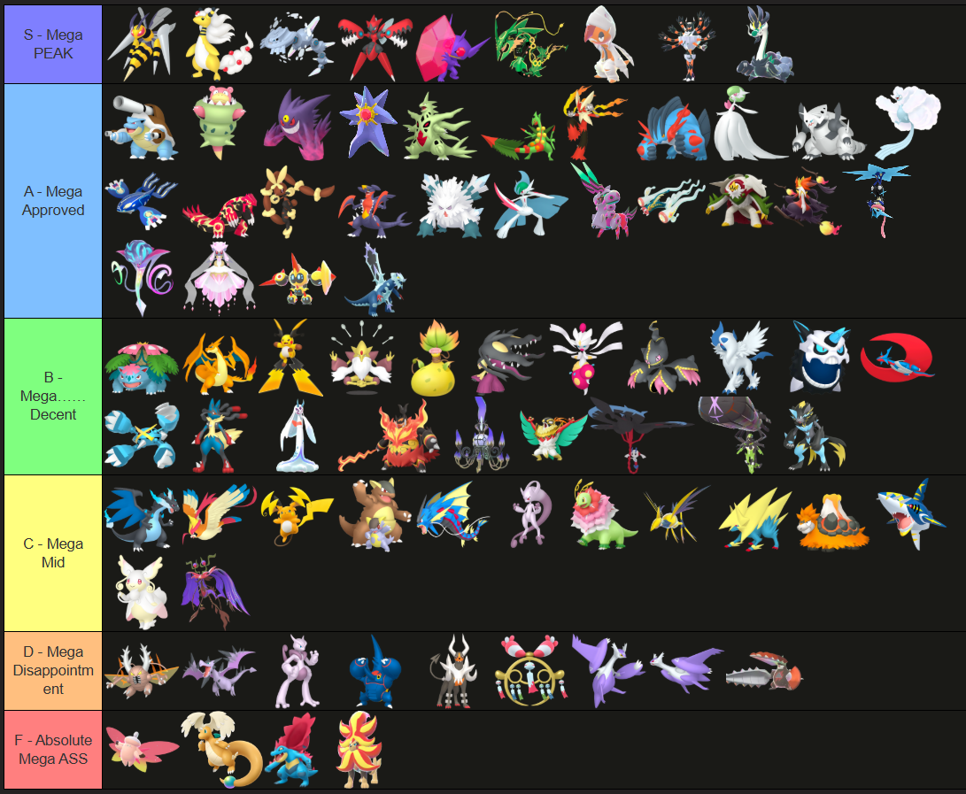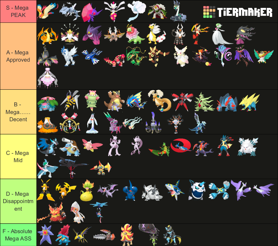 Alright, who wants to rank em all?https://tiermaker.com/create/-all-74-mega-evolutions-both-new-and-old--12145