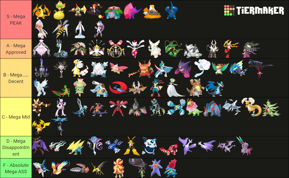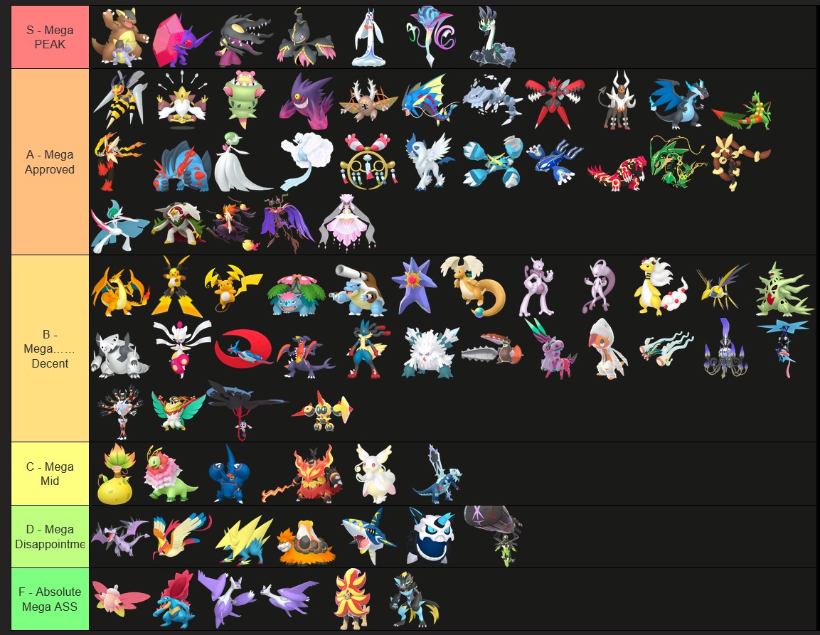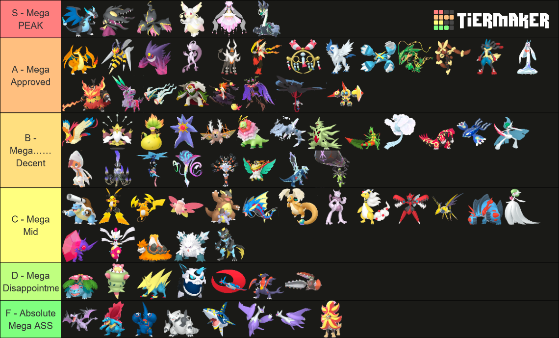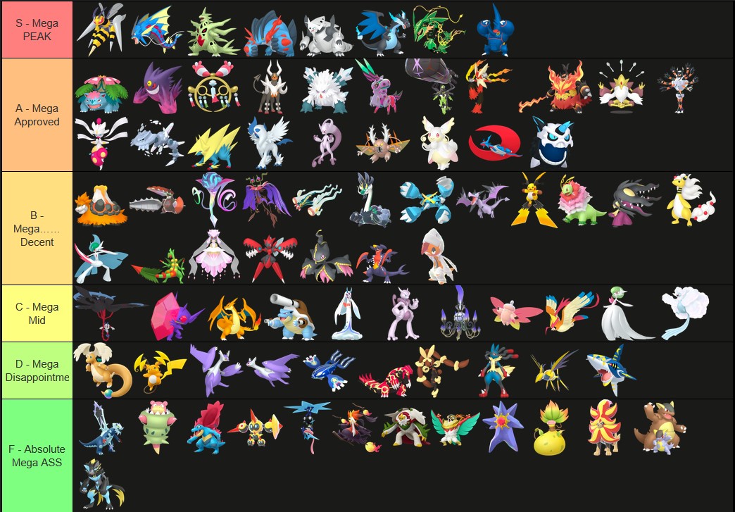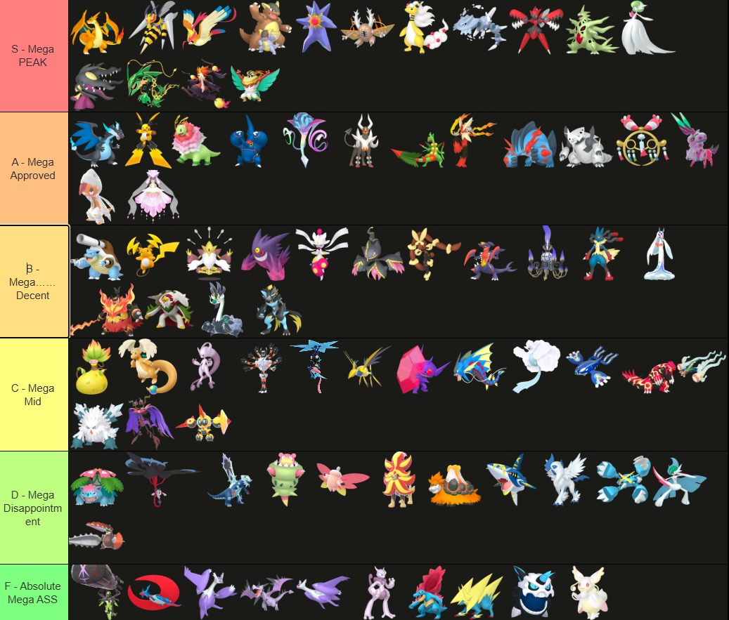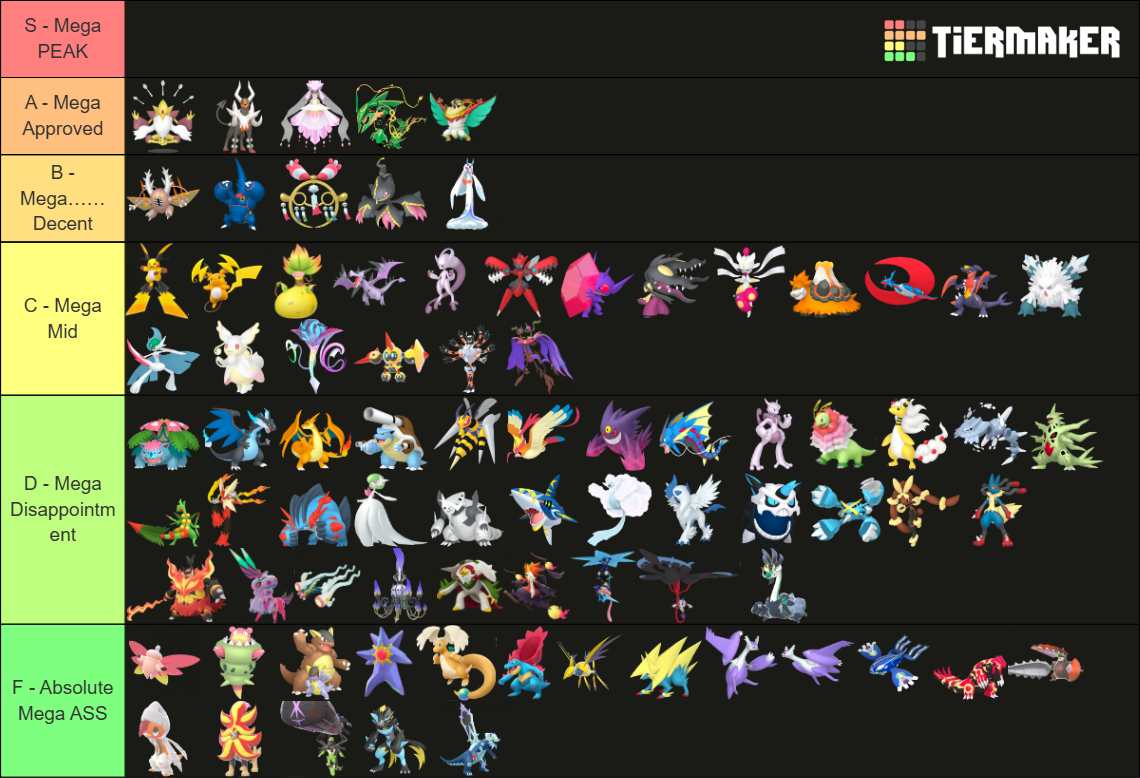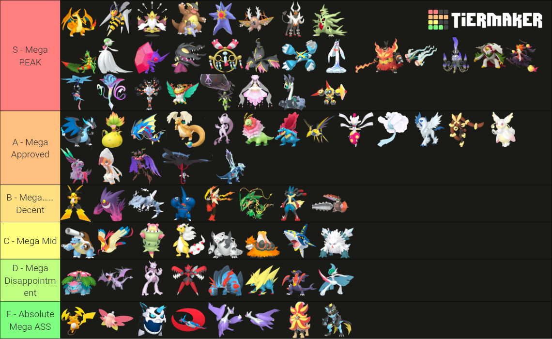 Alright, who wants to rank em all?https://tiermaker.com/create/-all-74-mega-evolutions-both-new-and-old--12145