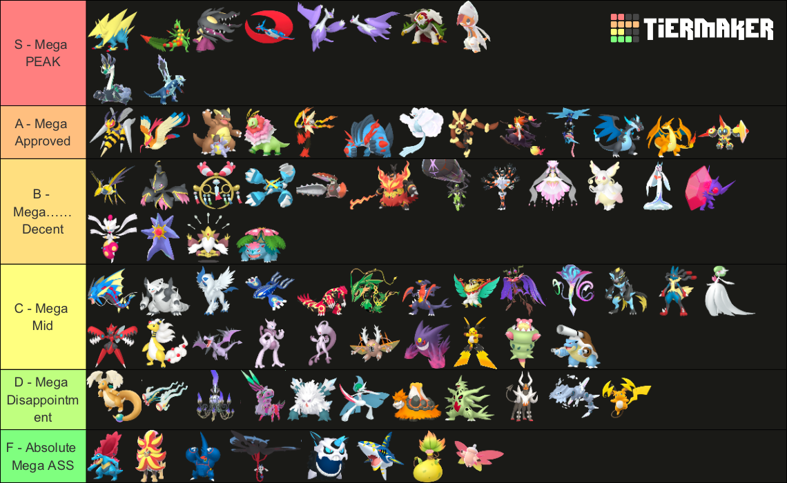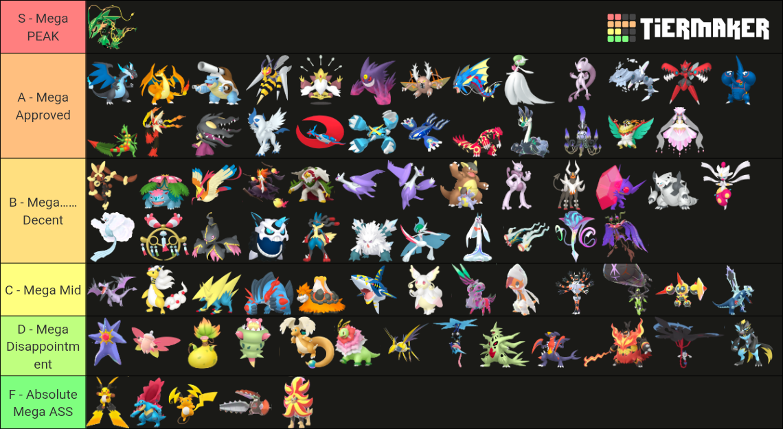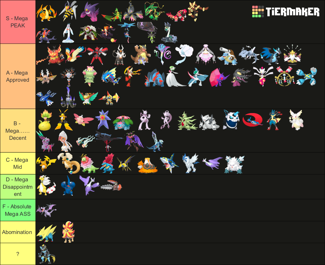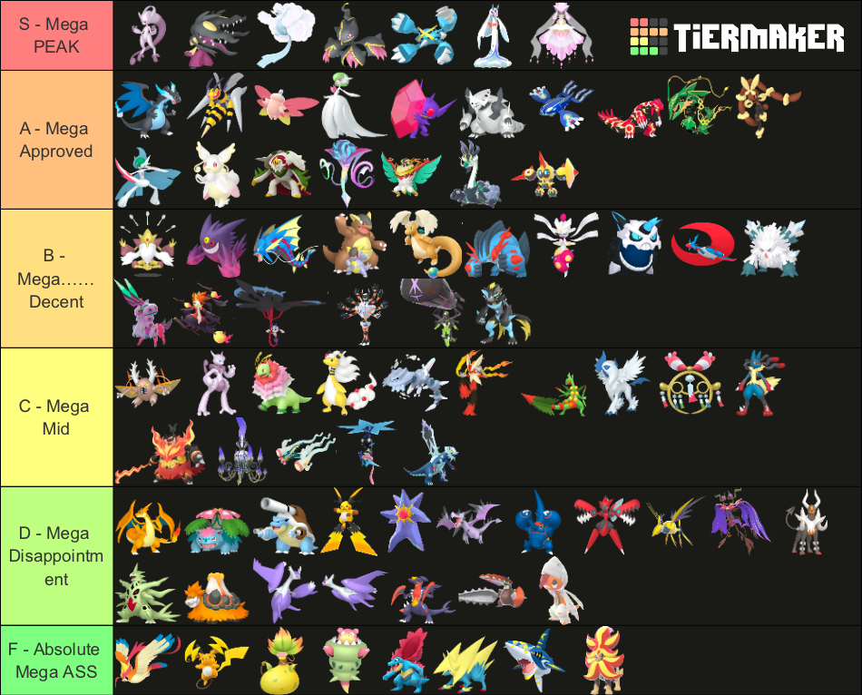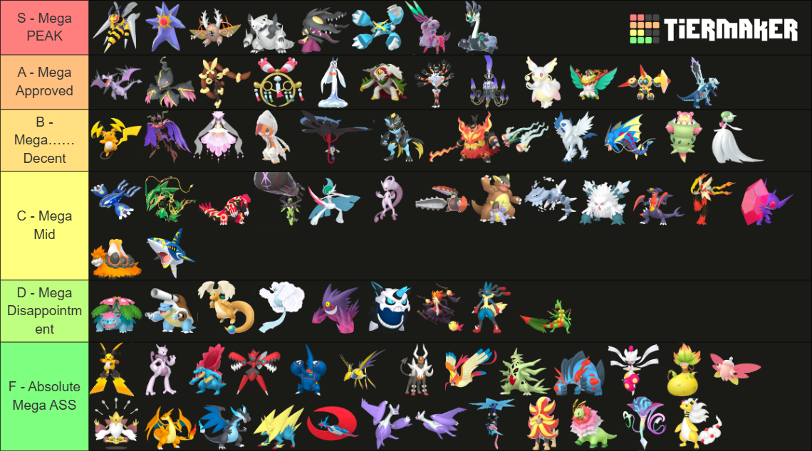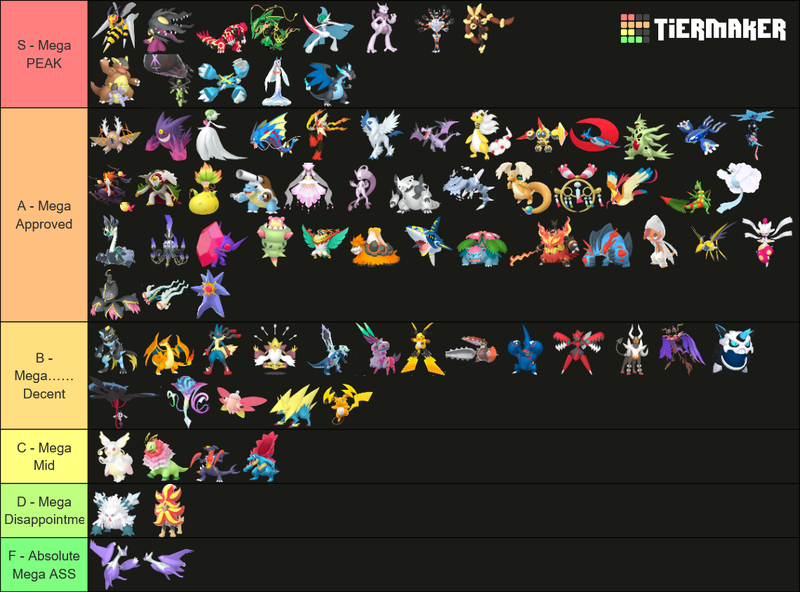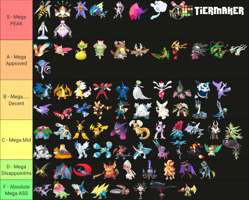 Alright, who wants to rank em all?https://tiermaker.com/create/-all-74-mega-evolutions-both-new-and-old--12145