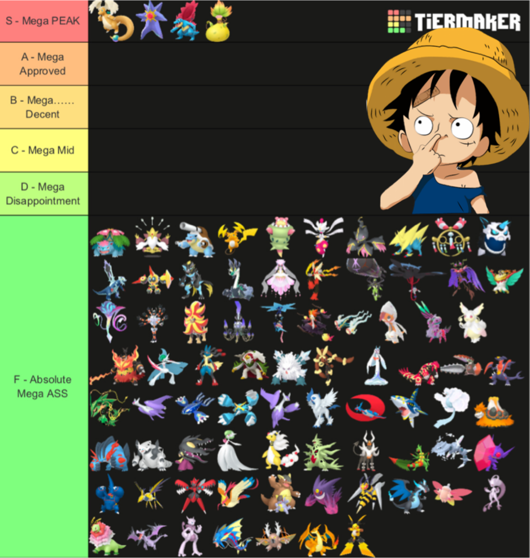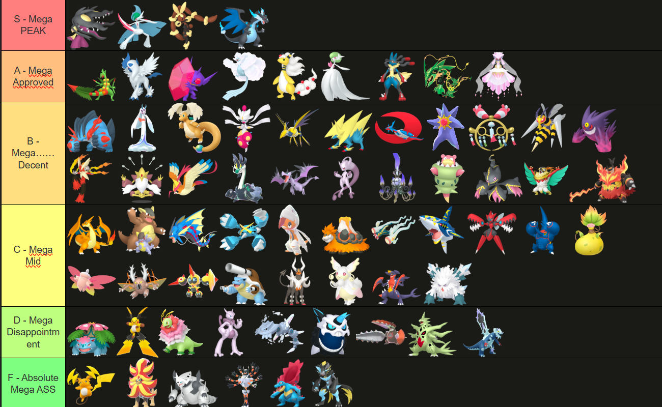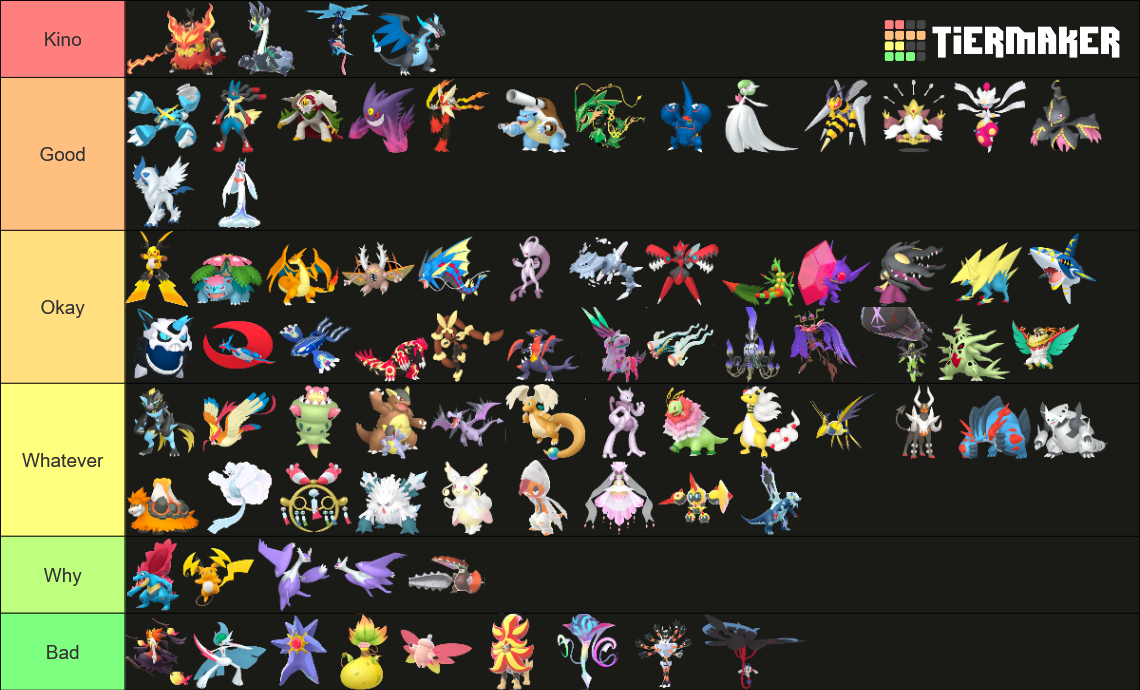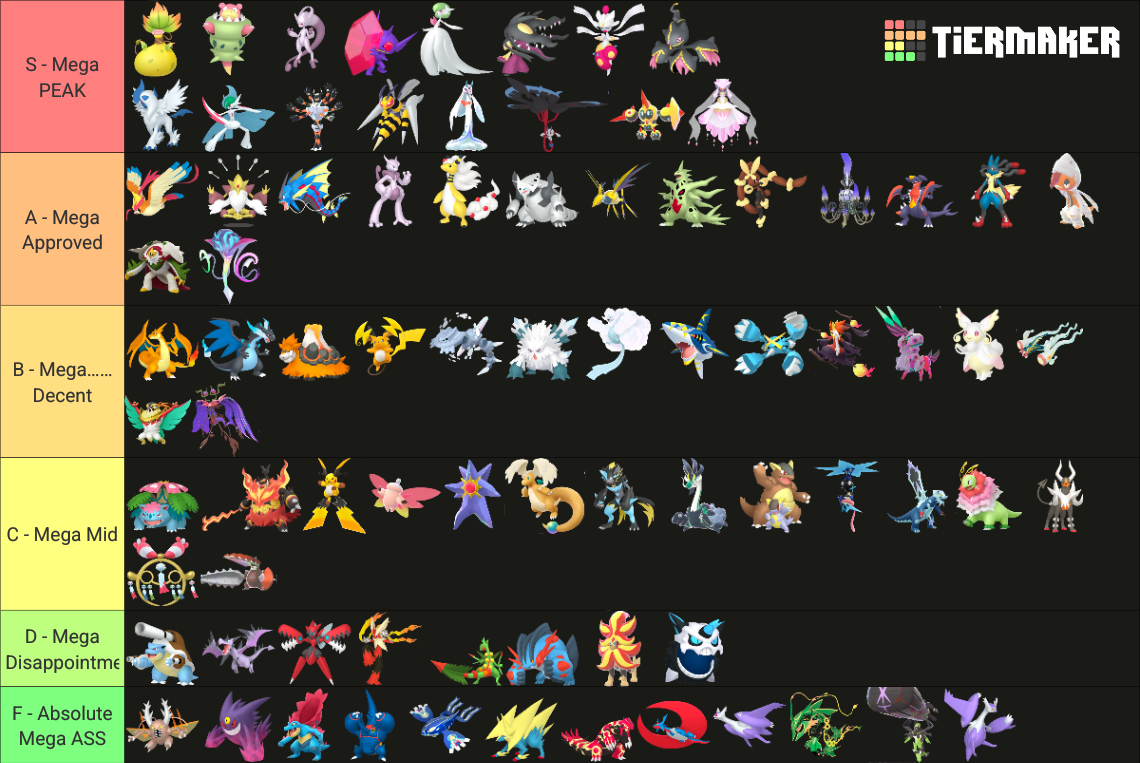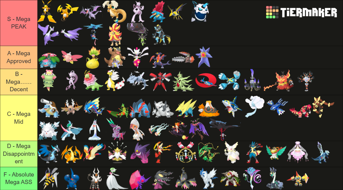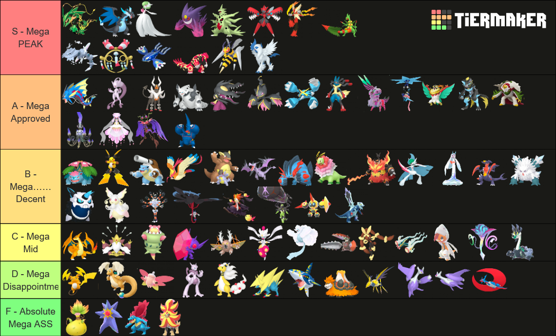 Alright, who wants to rank em all?https://tiermaker.com/create/-all-74-mega-evolutions-both-new-and-old--12145