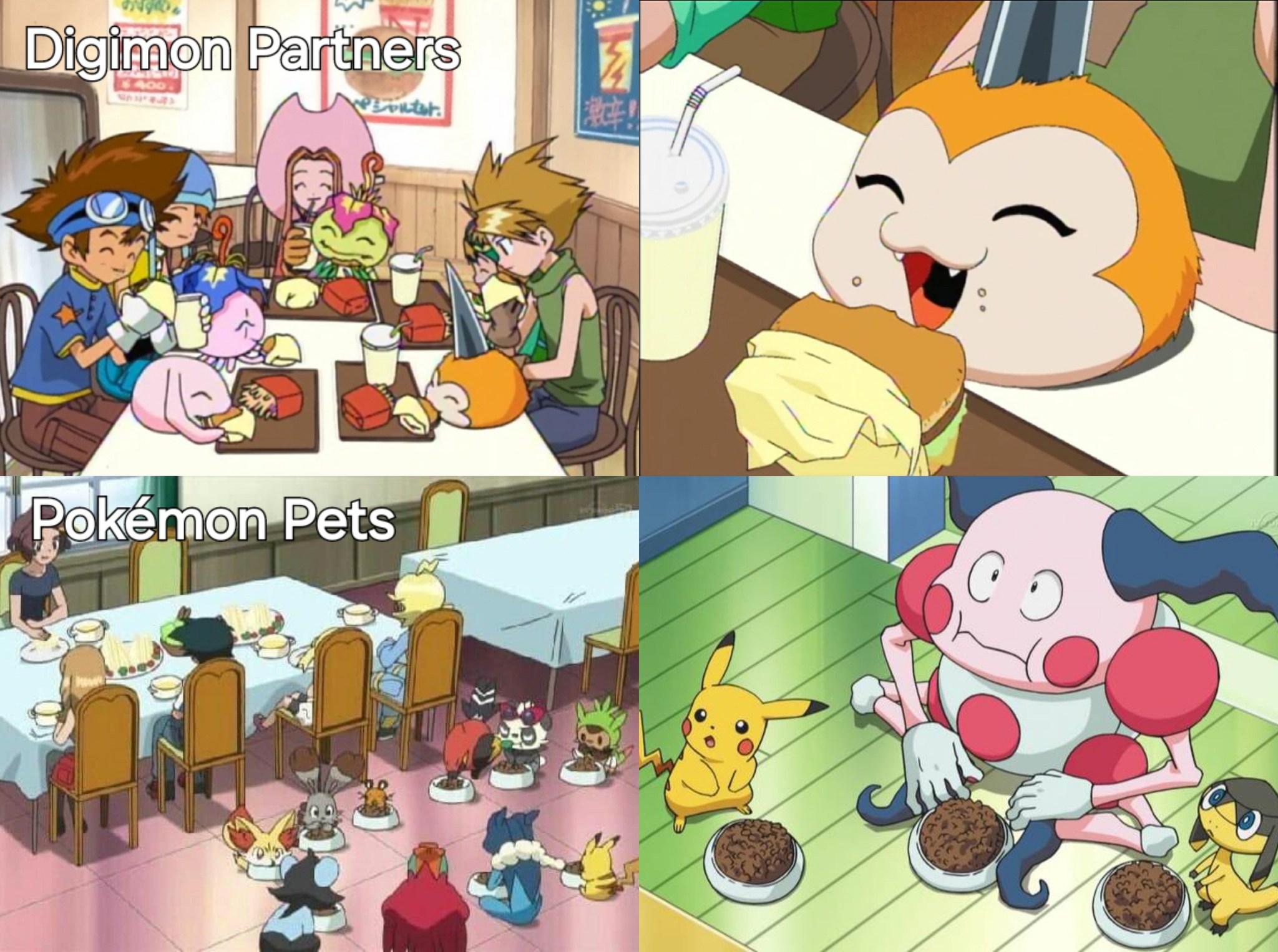 at least the pokemon are eating kibbles, despite being so grotesquely humanoid.