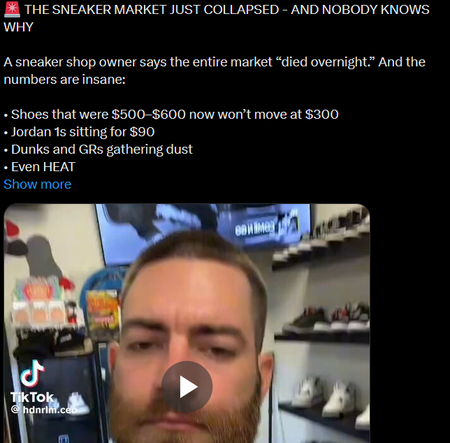 >>58676097>and nobody knows whyWell, there just so happens that a certain demographic stopped getting free money... and said demographic is really into sneakers...