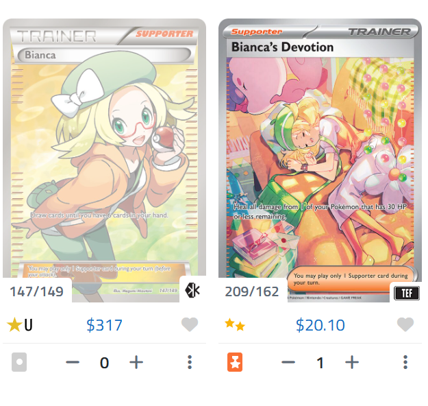 Sold my beat up Bianca today. I loved it but I would rather own it in Japanese. I feel like her SAR is just as good as her B&W card, while being 1/10th the price.