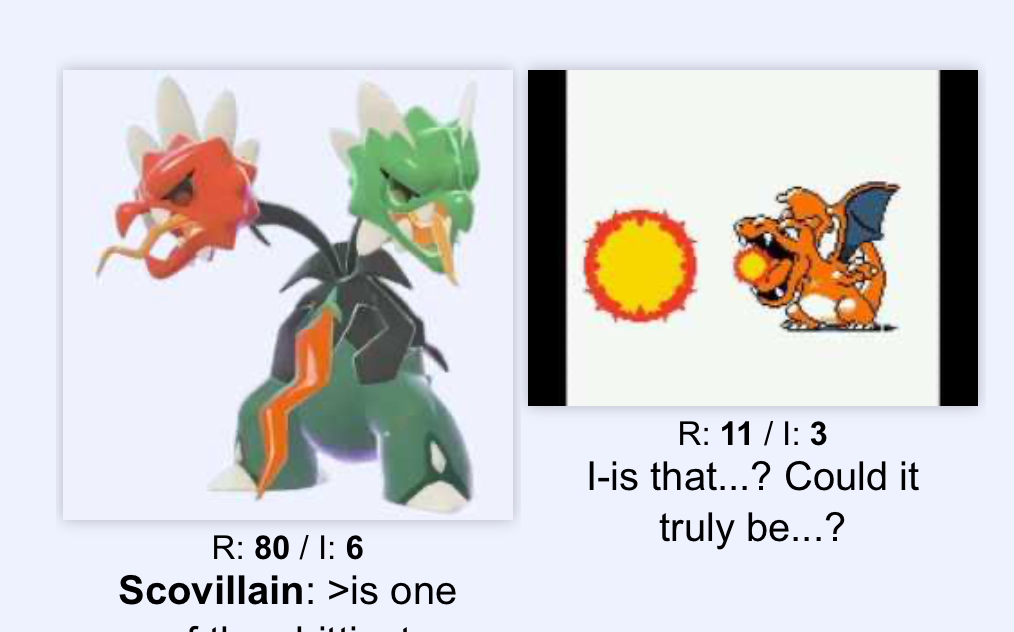 >>58735594>keeps coming up with excuses as to why his Chlorophyll Mega Scovillain fetish is actually the most genius idea of all time and it's impossible to counter as soon as Sun goes upThat's nice, dear. Too bad I've already exploited its dogshit stats by smothering it in Parting Shots to make it a non-threat.