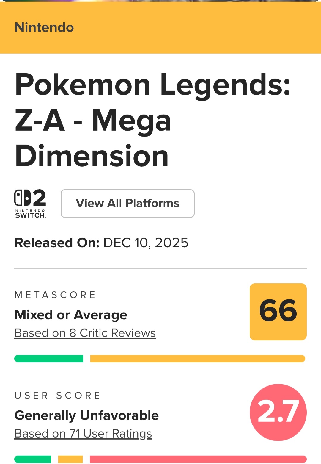 >>58750561>sold betterKeep peddling this meme the fact of the matter is that not only did it sell worse than PLA it sold worse while being a bundled launch title for the switch 2 with no other game competing with it like LA had to with both BDSP and SV dropping within a year of one another