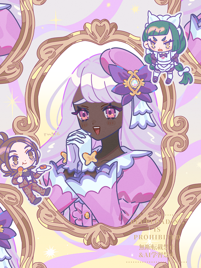 The google translation is too much of a mess to understand but anyway cool style, the way this artist draws Jacinthe is very cute