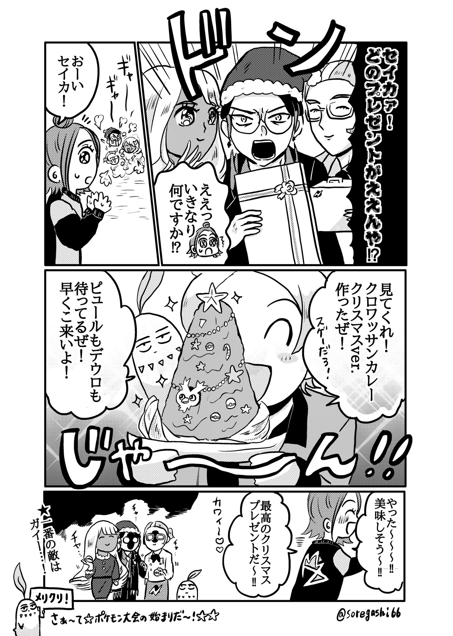 >>58779522Corbeau:>Hey, Harmony! Which present is best?!Harmony:>Huh? What's this all of a sudden!?!?”Urbain:>Hey Harmony!>Look! I made a Christmas version of Croissant Curry! It's amazing!”Harmony:>Yay~~~!! It looks delicious~!!! This is the best Christmas present~!!! Cute~ <3 <3>*The biggest enemy is Urbain…>Now~* The pokemon tournament begins!**>Chikorita’s sign: Merry Christmas!