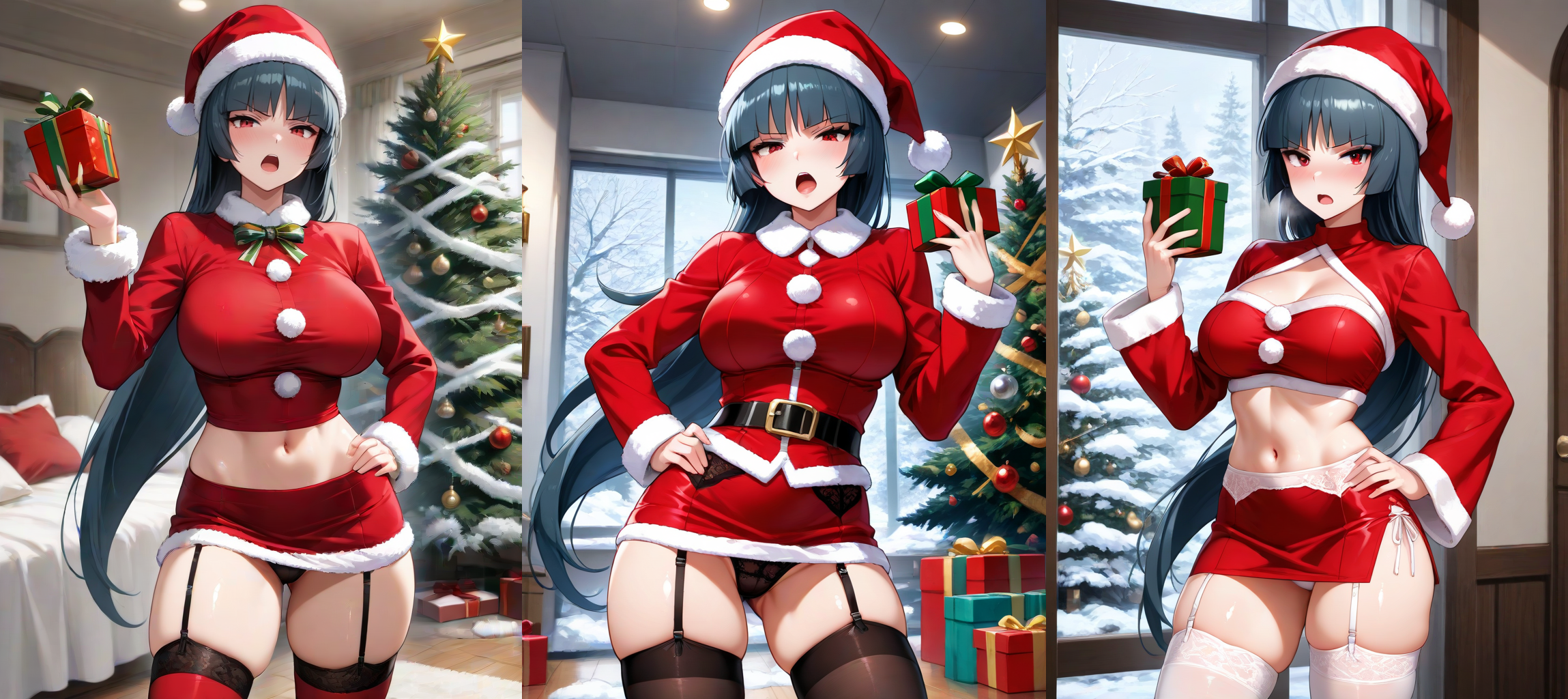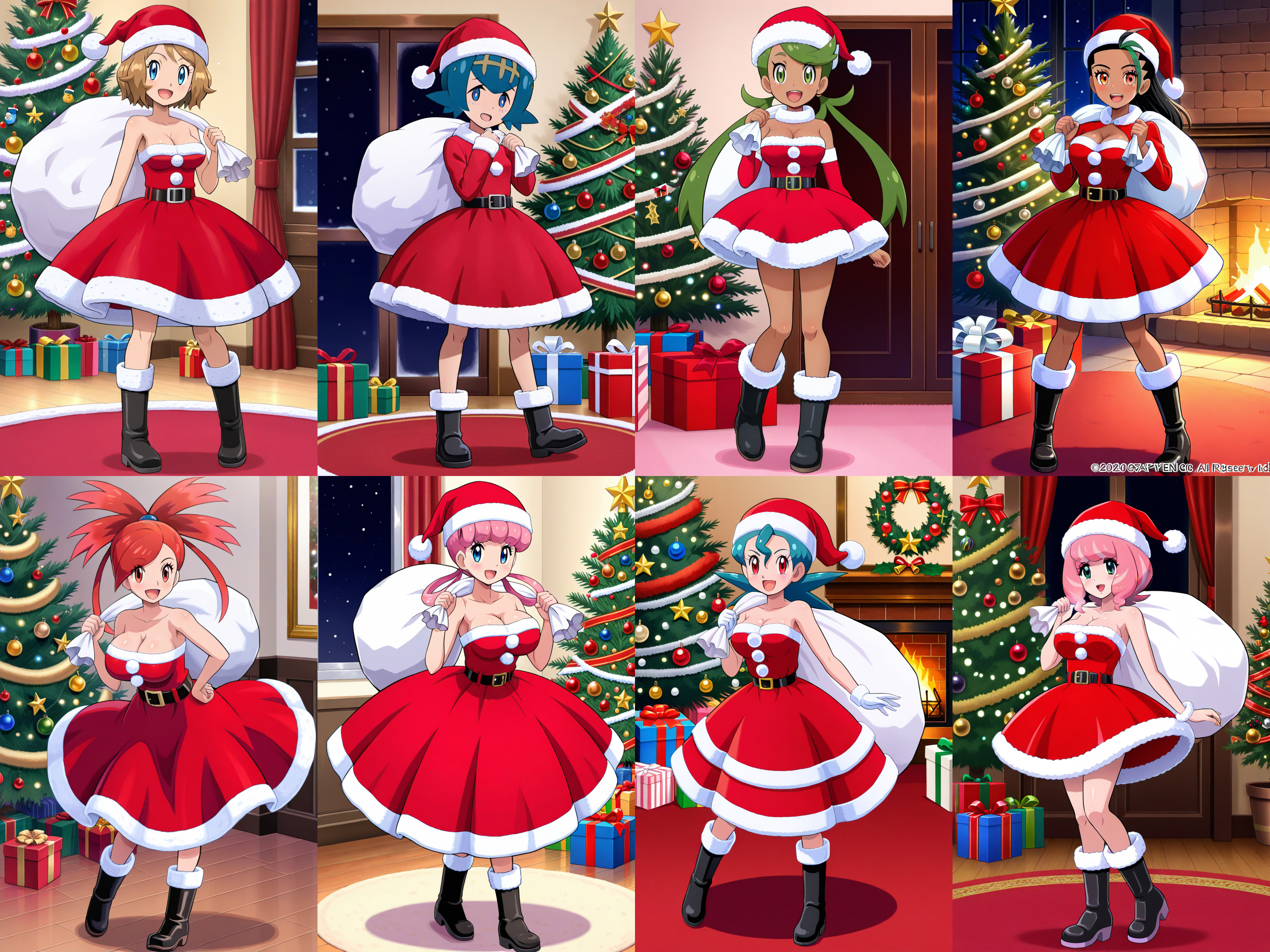 Merry Christmas to one and all. Here's my contribution to the Santa Gals. Pictured are the best ones I got for each girl in this first batch. You can see the full gallery here: https://www.pixiv.net/en/artworks/139033437I'll probably do more of these later in the day, once festivities have come to an end. Stay tuned for that.