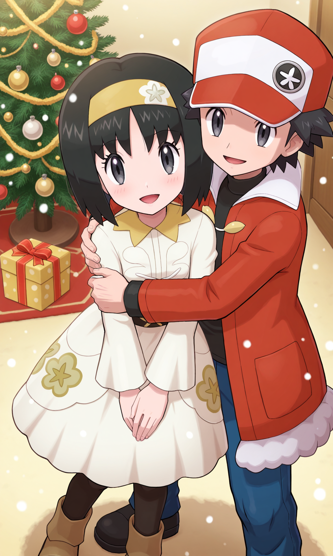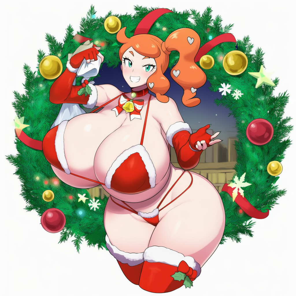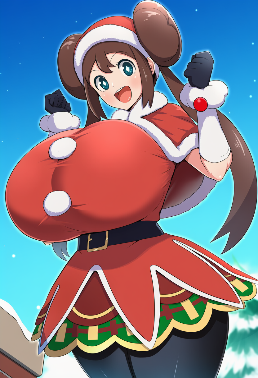 Requesting busty rosa wearing her holiday outfit from masters posing or hugging her delibird