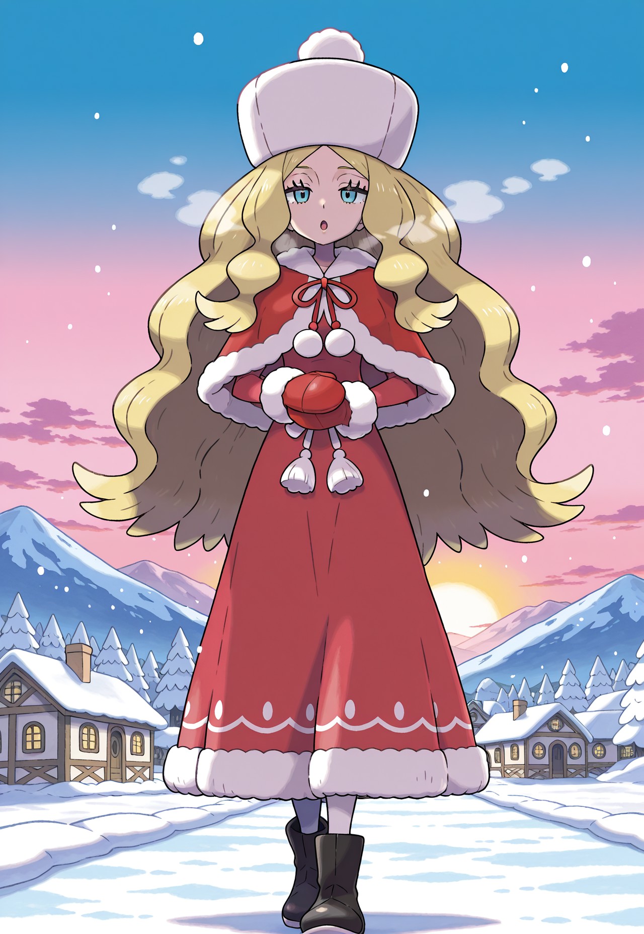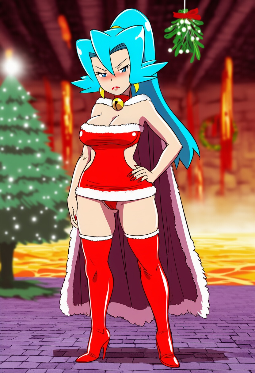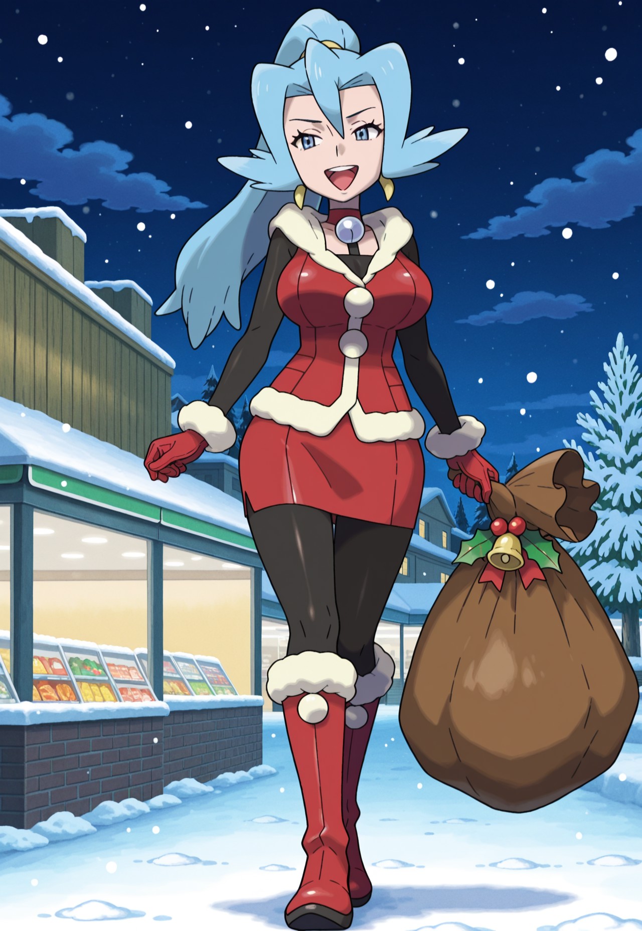 Requesting busty rosa wearing her holiday outfit from masters posing or hugging her delibird