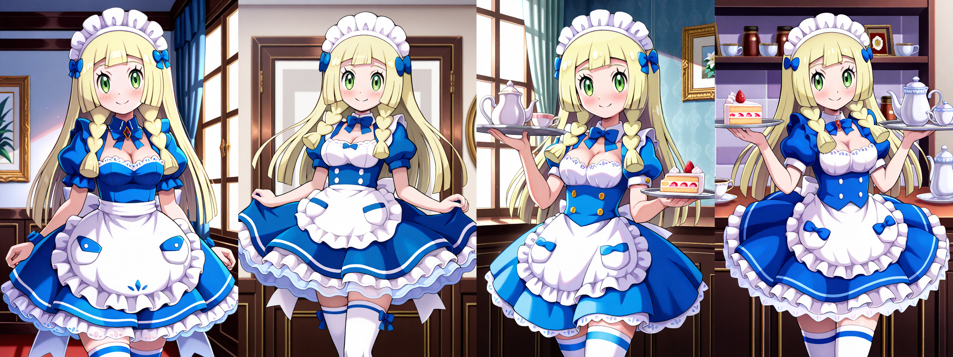 >>58785515I went through different example of art on danbooru, and both of them were featured with different sizes, so it was tough to narrow down. I've always had Lusamine on the larger side, and I took the medium approach for Karen.Here's an example of the other project I was working on before the Santa gals, basically reference sheets for the Alice cosplay involving different characters. Of the ones I've done with Lillie so far, this one's outfit is the closest to what I envisioned for that story of mine.Speaking of which, the sequel story, Looking-Glass, is all ready to go. My plan is to make the announcement over on dA at the start of January, and then post weekly chapters after that.
