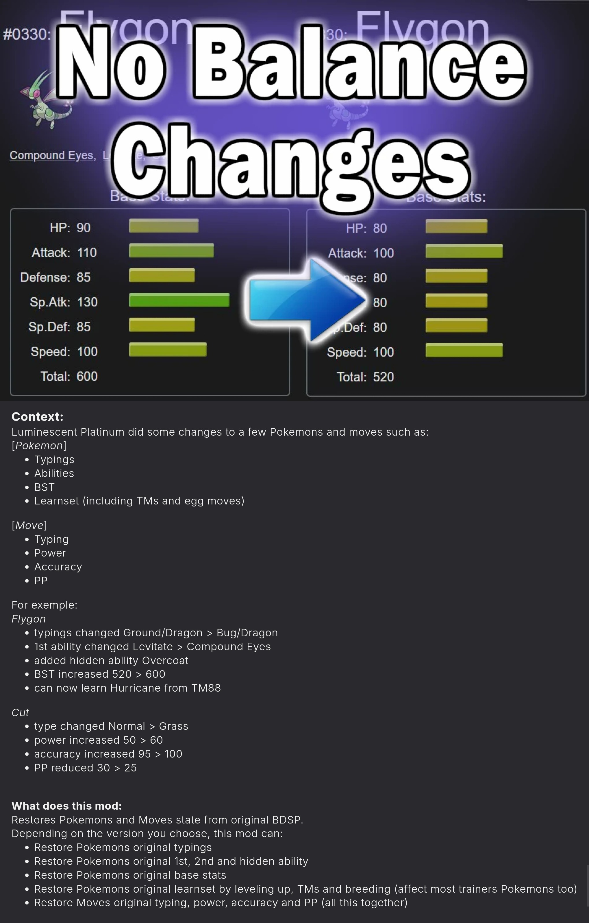 >>58761636>adds tons of new pokemon>adds the platinum story to the BD/SP games>adds new camera similar to pokemon XD>qol features similar to recent pokemon games (mints, etc)>faster and more fluid battlesall that plus that one "big music" mod from gamebanana, the modern pokemon graphics and it's a good time really.