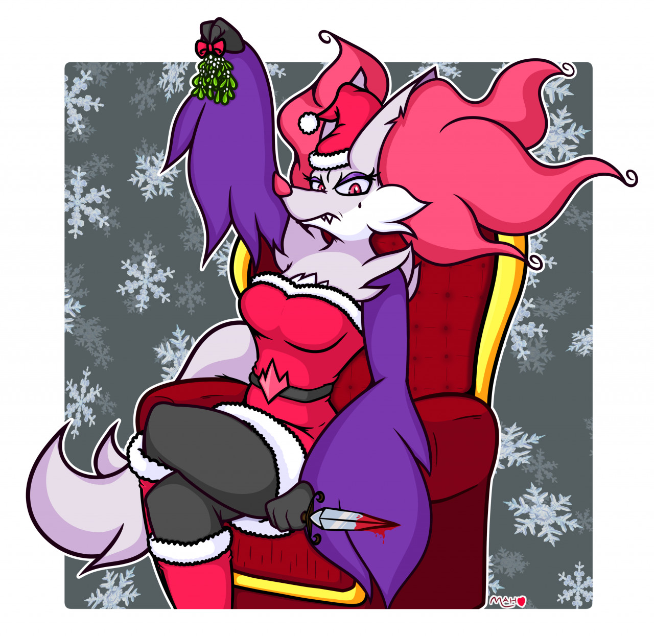 >holding mistletoe
