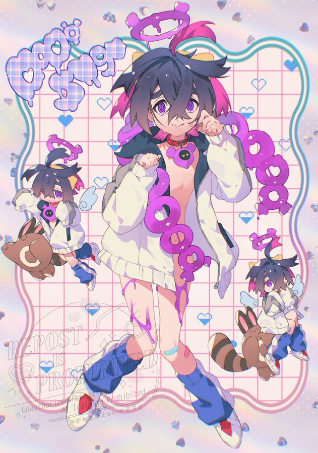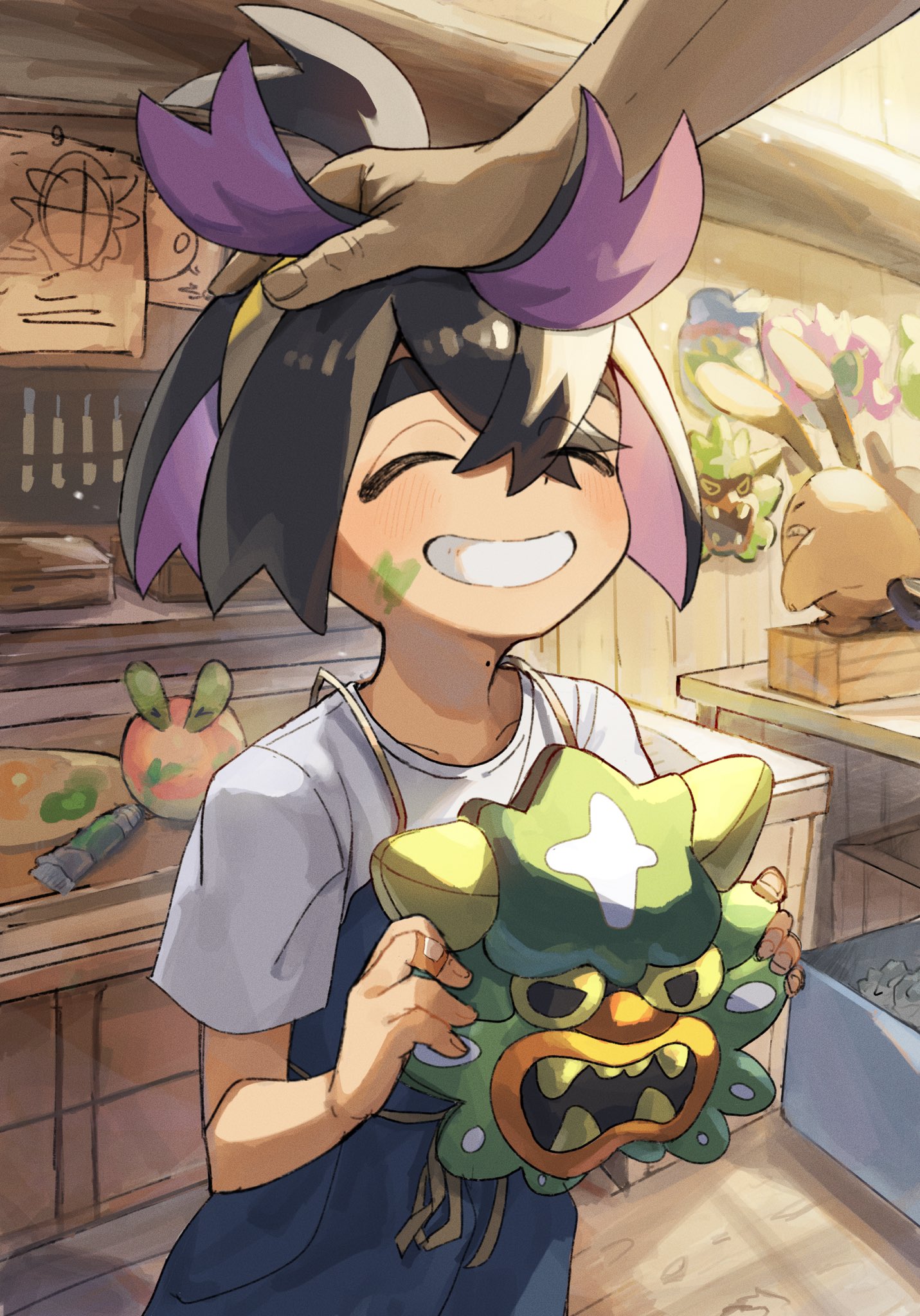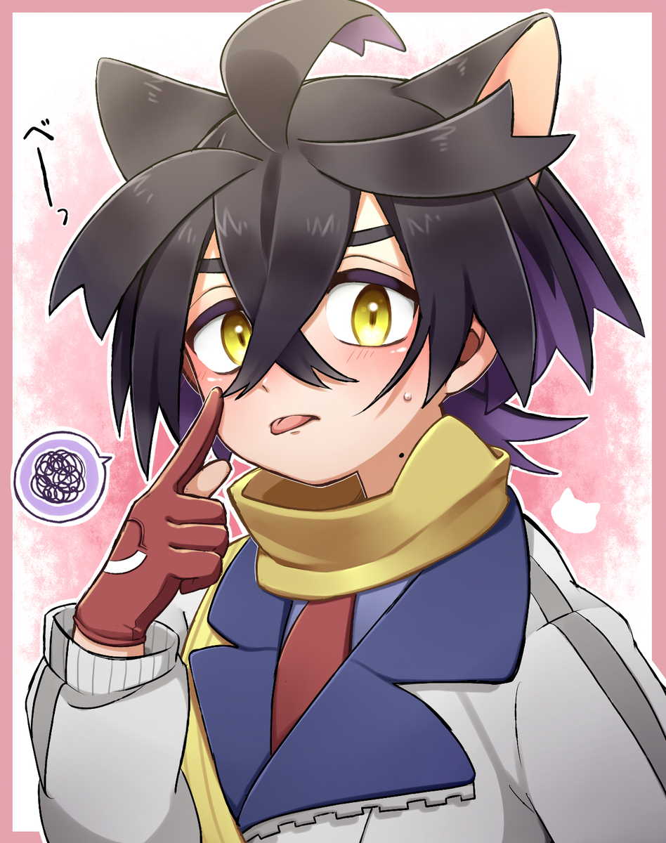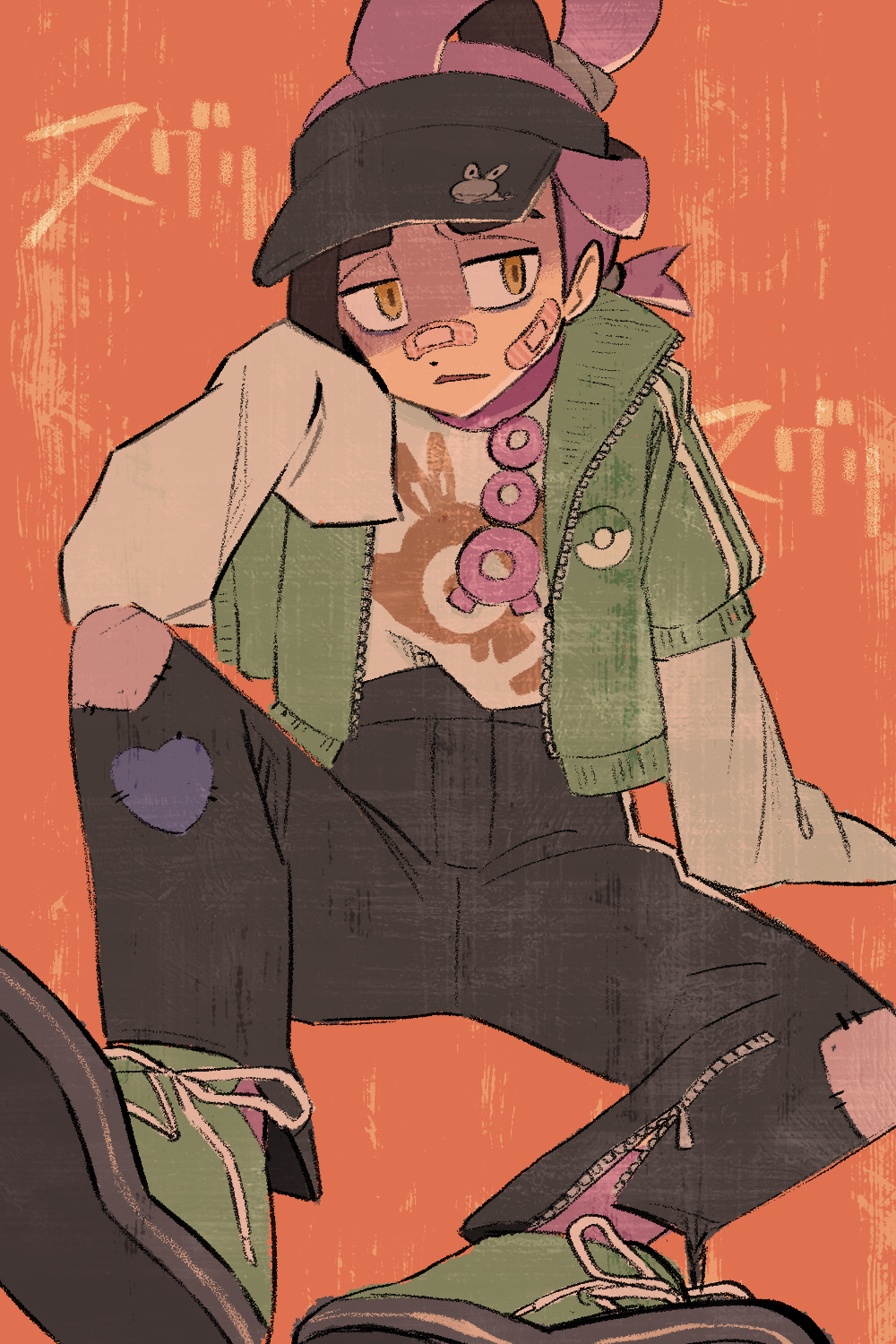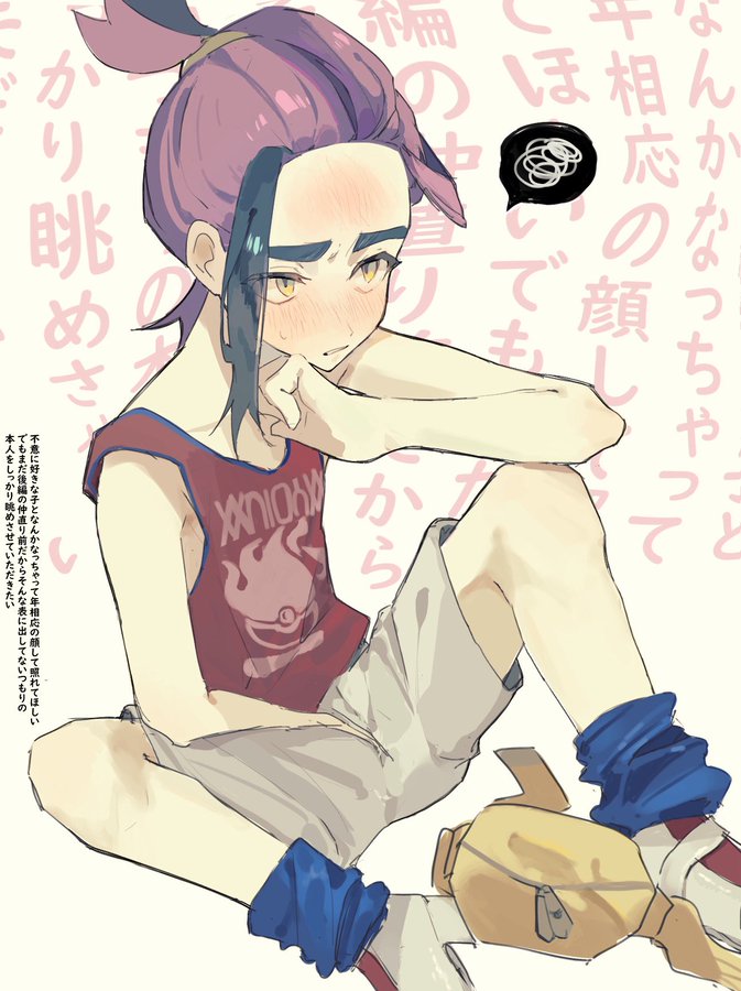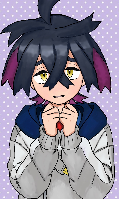 >>58793601>Ok! now that we've finished designing Kiera's Teal Mask look, its time top get started o his Indigo Disk look. Reminder, this is his villain arc so make him look badass and intimidated >"give him a bun to push his hair out of the way to show off his baby face and make his jacket fall of him showing off his scrawny body!