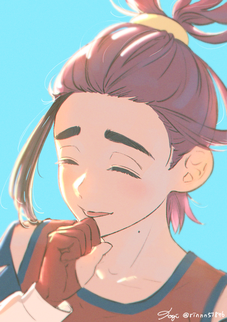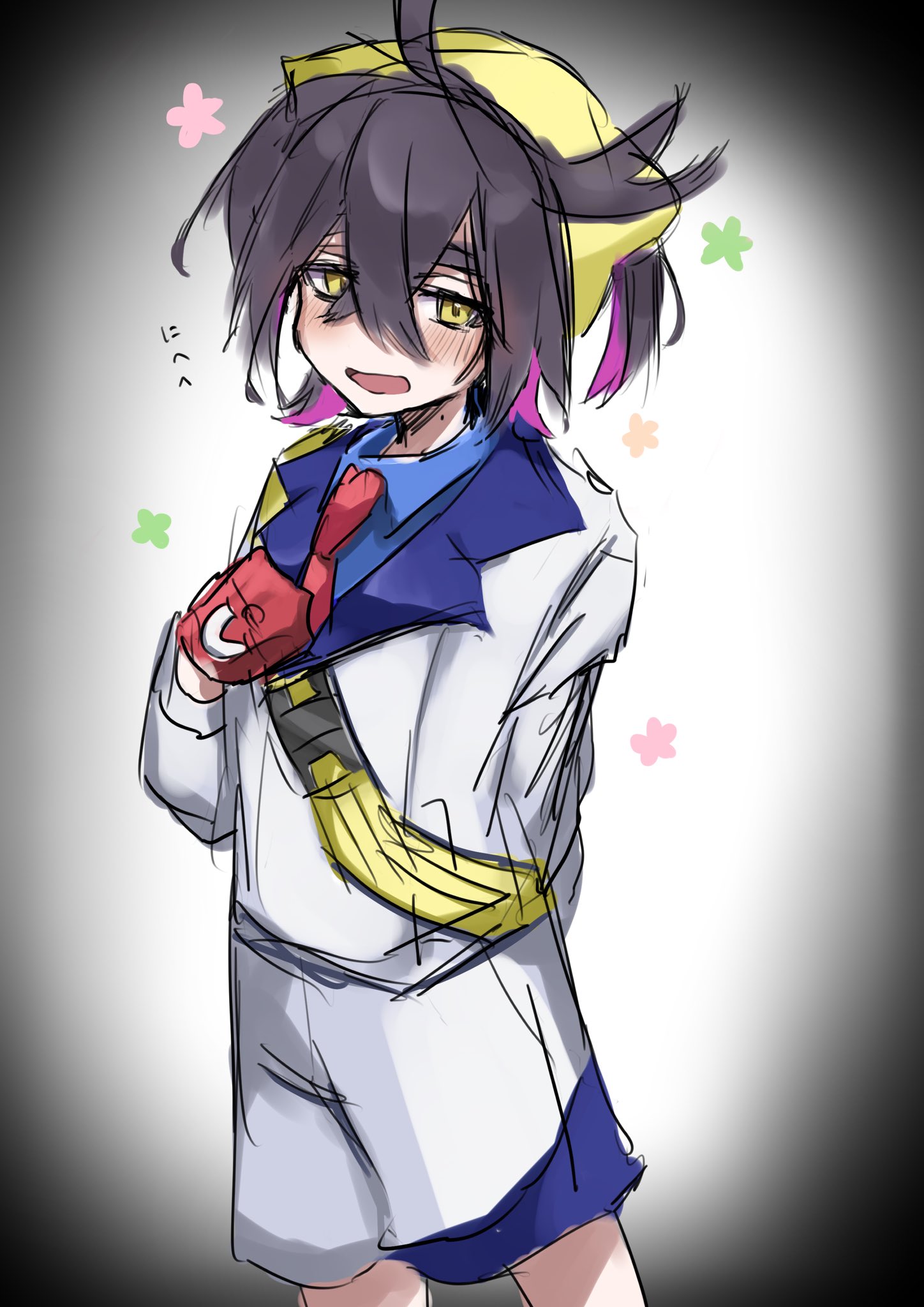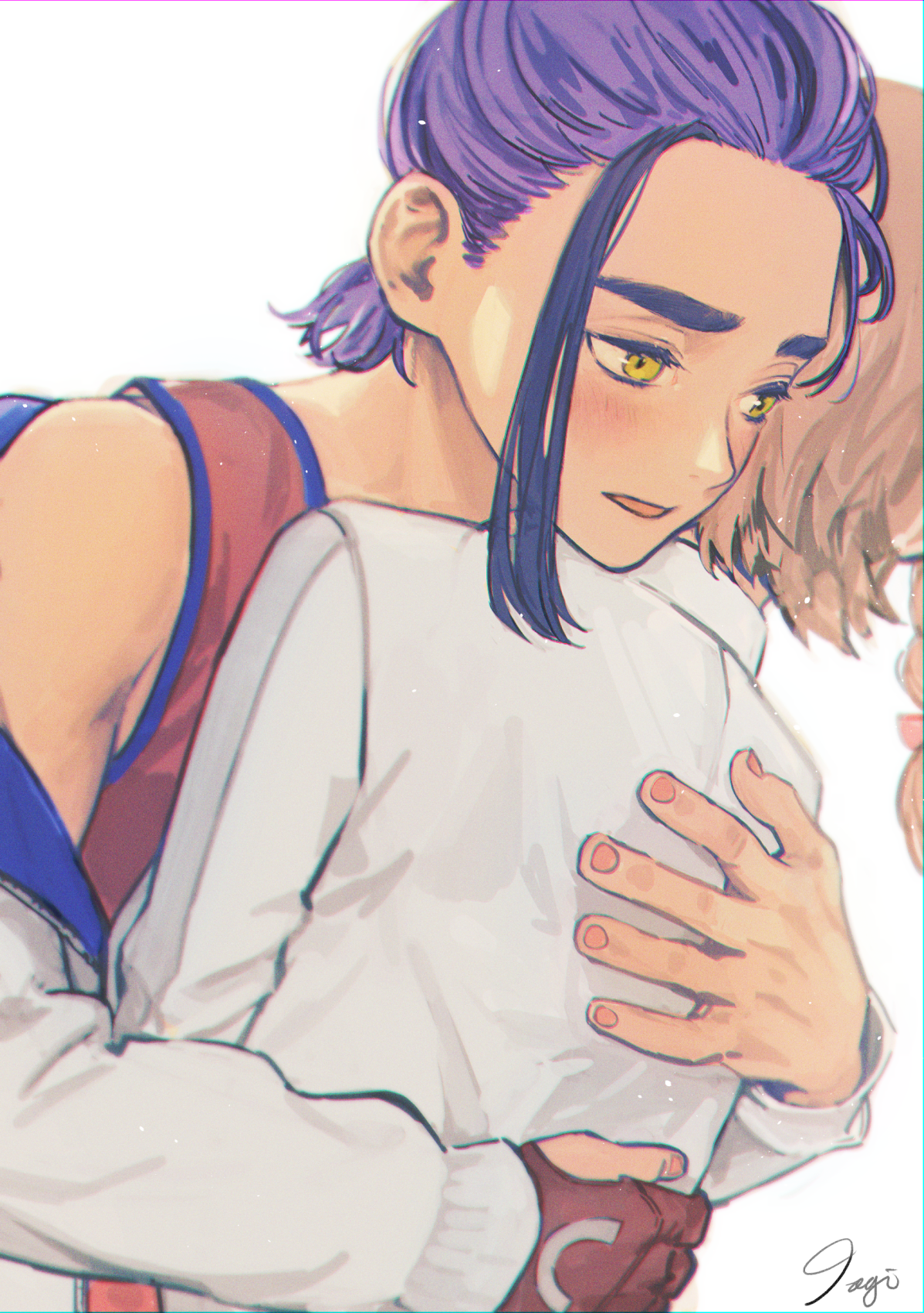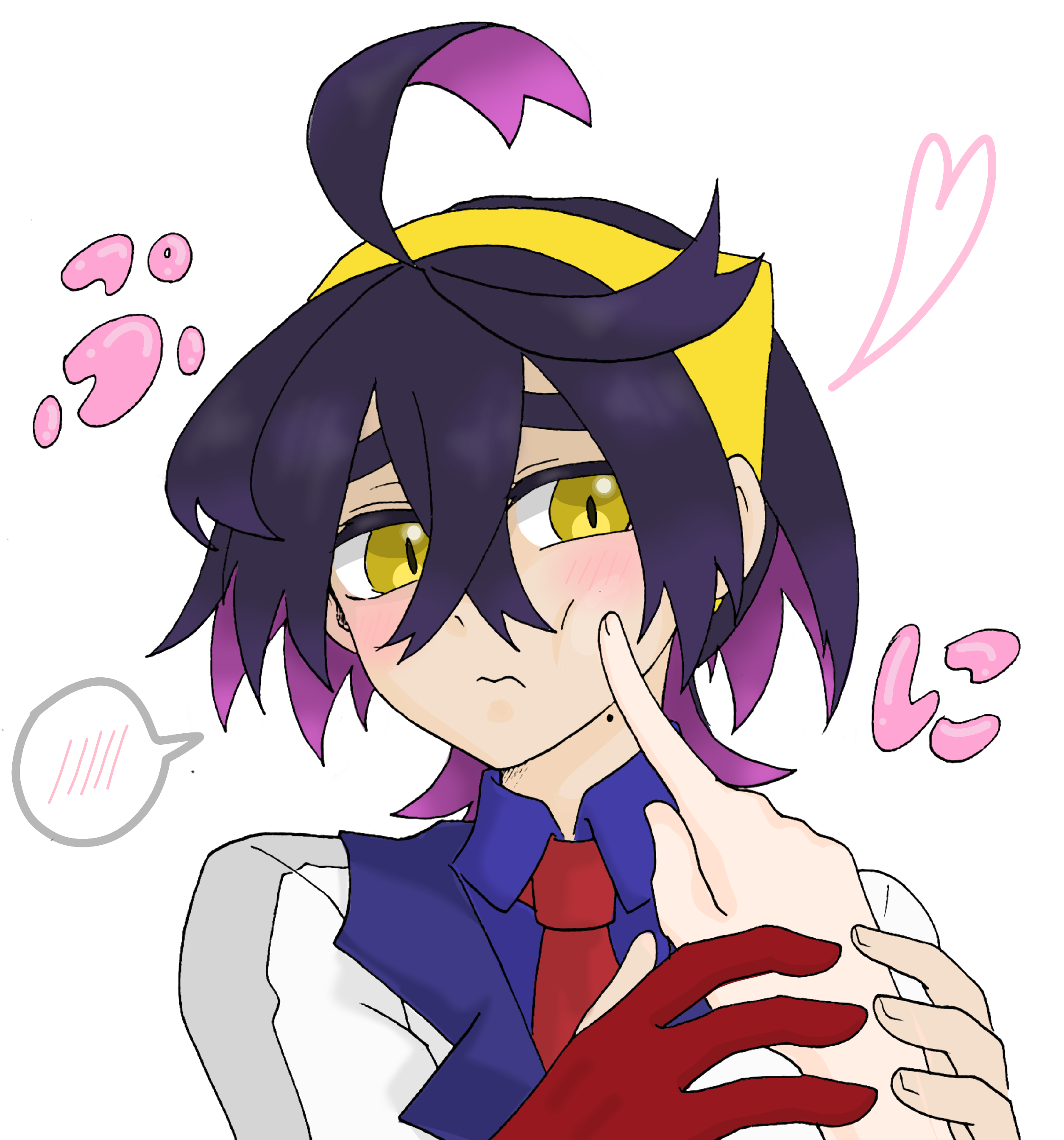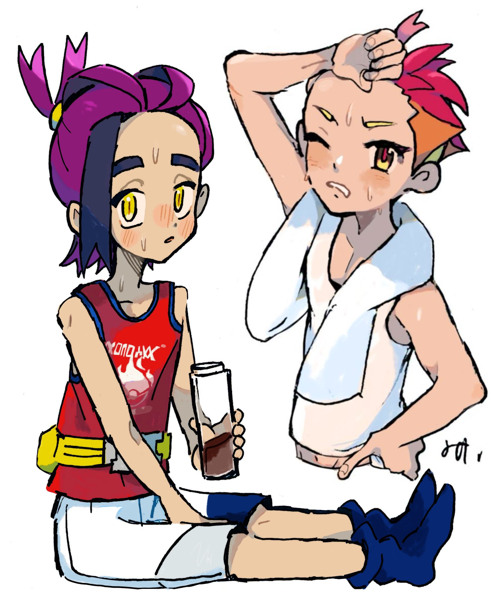 >>58793601>Ok! now that we've finished designing Kiera's Teal Mask look, its time top get started o his Indigo Disk look. Reminder, this is his villain arc so make him look badass and intimidated >"give him a bun to push his hair out of the way to show off his baby face and make his jacket fall of him showing off his scrawny body!