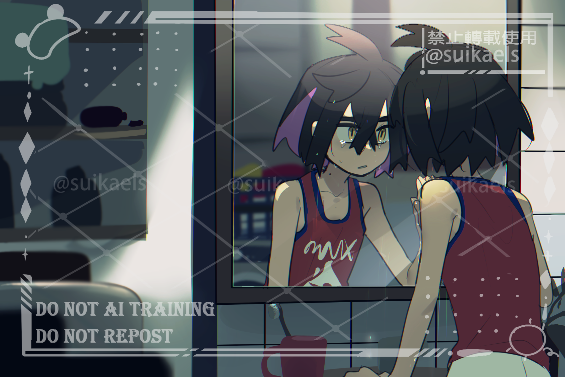 TQ:>N = Night (How are nights spent with Kieran?)Can't help but think he'd want to sneak out on those nights when being cooped up at home or school gets a bit too suffocating, just to breathe some fresh air, just to enjoy (You)r company. On most nights though, I think he'd just want to unwind after a long school day, and after he and his Pokémon are fed, maybe he'd play some video games or watch anime with (You)...