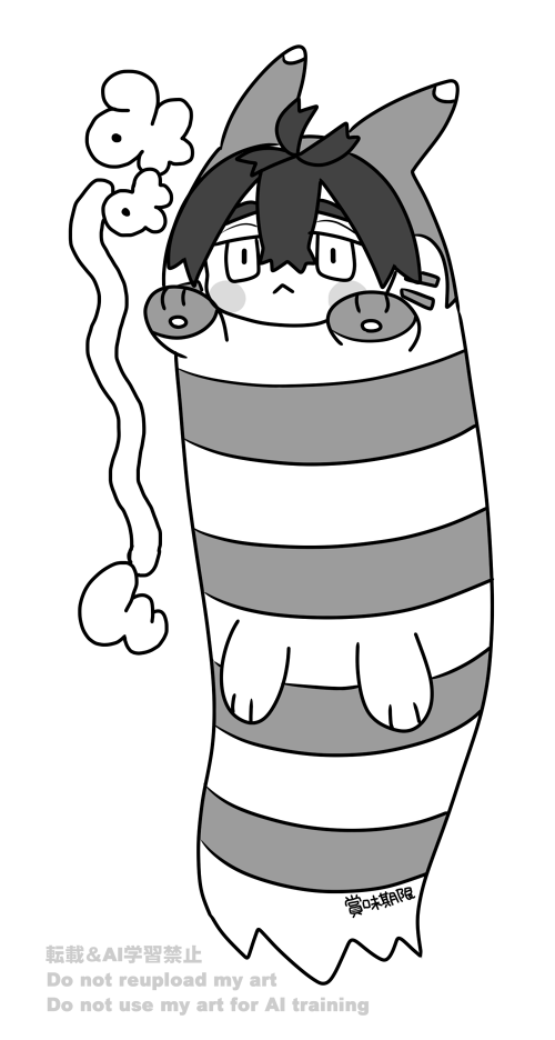 >>58816494Boxer shorts in black or in varying colours, fitting nice and snug on him. However, he still occasionally wears older pairs that his grandparents got for him when he was younger. They have silly prints on them, like apples or cute mons, and Kiki's embarrassed to be wearing them, but he's still comfy in them ...