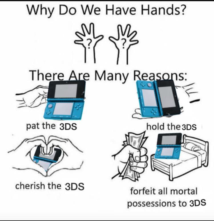 >>58791945Probably piracy. Kinda like how DS sales skyrocketed with the R4. With a modded 3DS you can pretty much play every pokemon game up to USUM...and a crap ton of other games. Much better than buying the same game again if Nintendo ports it to the Switch for example. Also people not satisfied with the Switch itself might look into getting a 3DS.Sure you can still emulate these on PC as well, but it is more comfortable on the 3DS imo.Also it was a middle finger to scalpers who sold old games at a ridiculous price. But now they might overprice the console itself...And I guess nostalgia? As >>58792025 said, these kind of videos have been more and more common, which mean normies might try it.