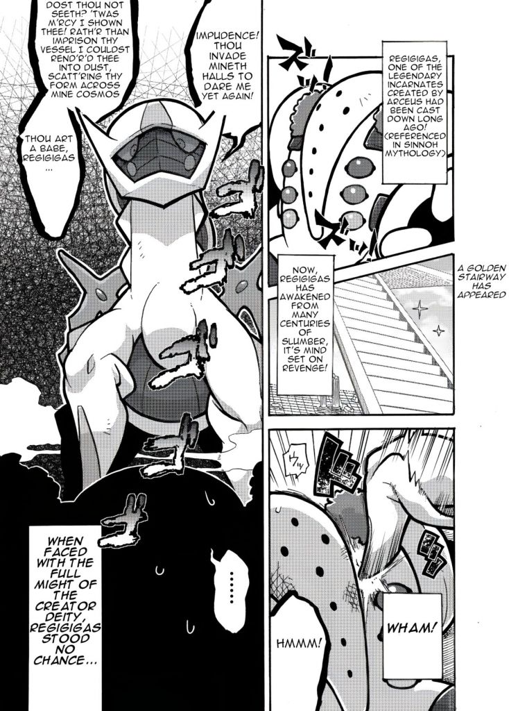 >>58824059OP here I don't think reginosis is canon, i just think its really fucking funny that it has Arceus fuck a random human dude and and that pisses off Regigigas so much that he decides to rebel again.