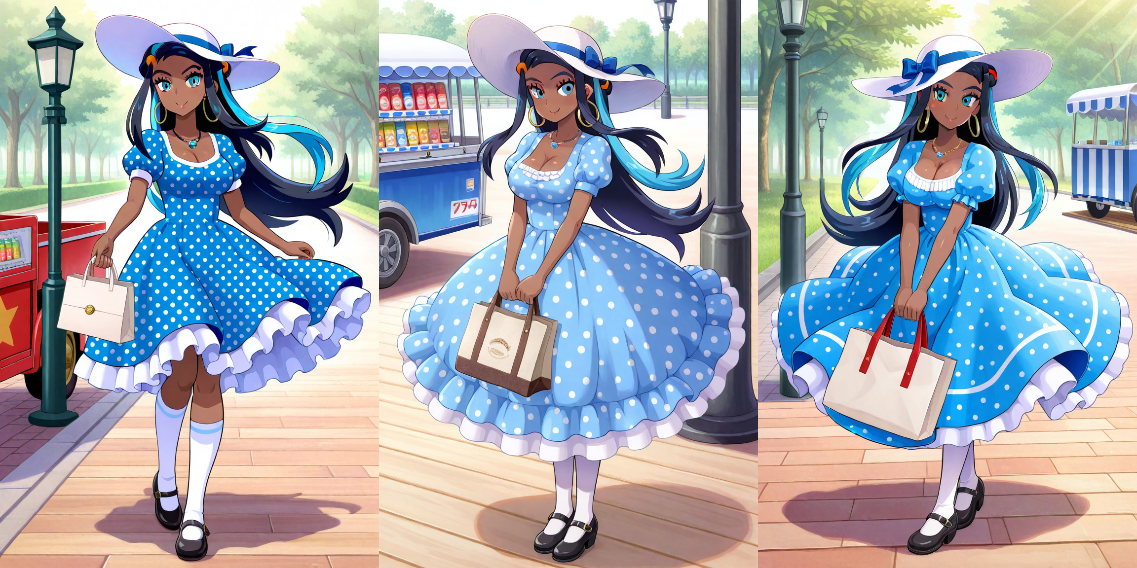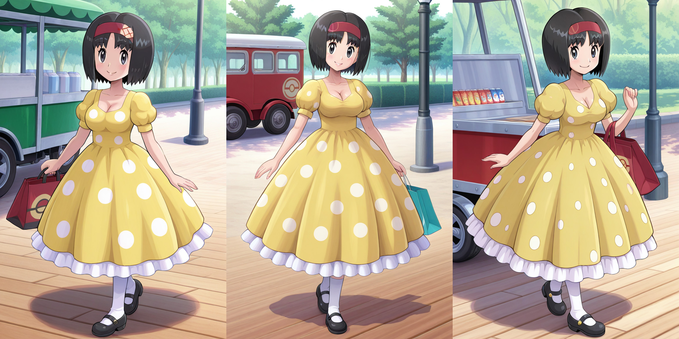 Bonnie was cute as a button, as she normally is.I made it a point to take care of the younger characters in the rotation first, so now it's the adults. Yay or nay on if cleavage should be included. If yay, would the 'collared dress' prompt still pass, or should I remove it?>>58819654The bag designs have been all over the place, as I haven't been specific on what everyone is carrying. Some have been shopping bags, while others are more like purses or the like.