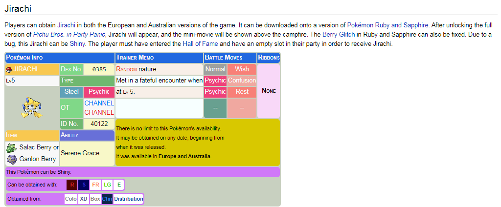 Damn, I had no idea that you had to actually beat the entire game to transfer it from Channel to Ruby or Sapphire. I always assumed it was just like the US Colo Bonus Disc Jirachi since that can be sent to any Ruby or Sapphire save as long as you have the Pokedex.