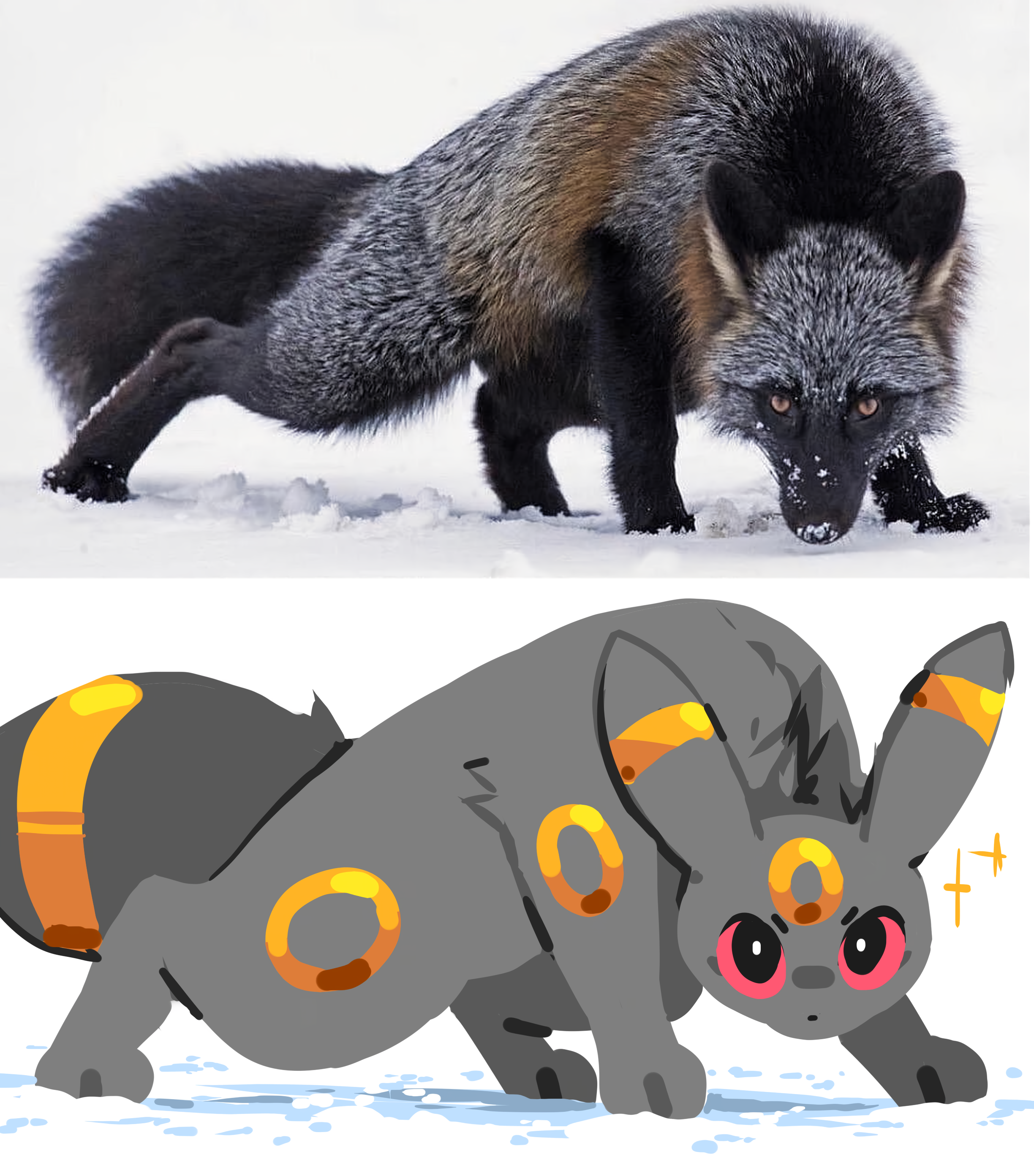 >>58821625>kinda similar to Umbreon but they both have the fox tails only Floatzel has 2 of them.I still feel Umbreon is modeled mostly after a rabbit.
