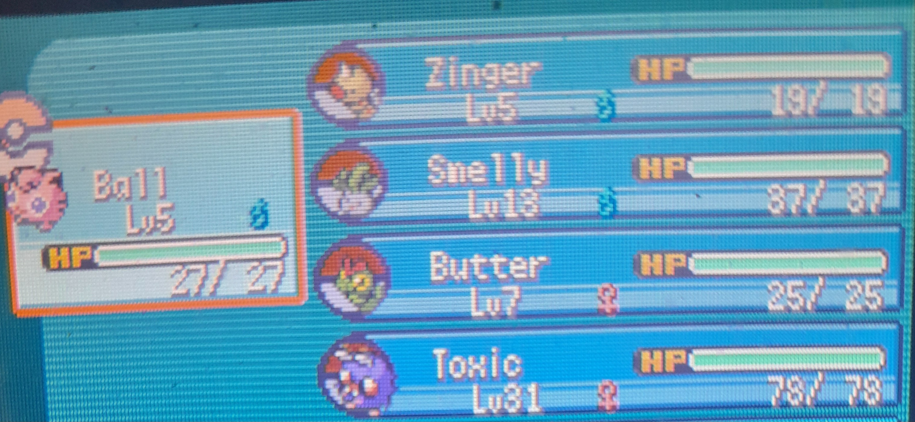 These five pokemon didn't die but non of them know Surf and I have no way of reaching Victory Road so the nuzlocke was over, they survives though if anyone wants them.