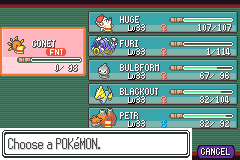 About to take on RED and put an end to my suffering in Gold. Typhlosion, Victreebell, Gengar, Nidoqueen, Machamp and Qwilfish.Machamp was my sole survivor against Lance in the E4, Typhlosion the sole survivor against Blue.