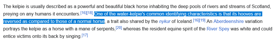>>58839419i know someone will just respond to this with>>its based on something so that means its good!but its a kelpie, whose hooves are traditionally backwards