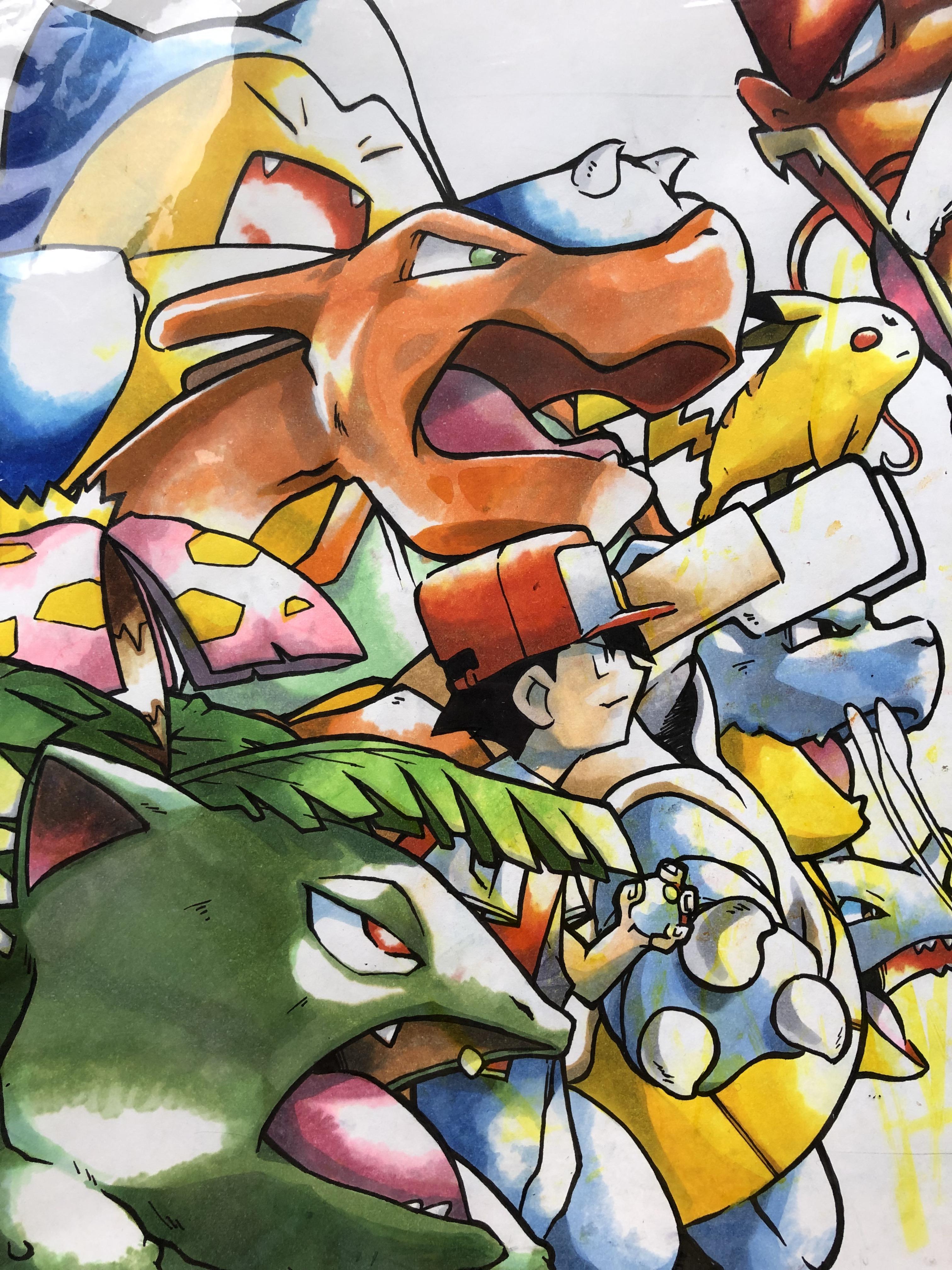 Watercolors were based but you can understand why Sugi changed to more plain styles when you remember that his key art was being used as assets for everything worldwide, and needed to be easy to make out in all kinds of sizes and printing scenariosEven as early as the TCG's Gym 1 set in 1998, Sugimori had new compositions coming out that used other techniques, digital ink and pencils similar to what you'd see in Gen 3 and 4.However they kept the watercolor aesthetics in Gen 2 game art likely for consistency, which I like because especially for the Pokemon, it gives the impression of a sketch artist filling out his zukan by hand.