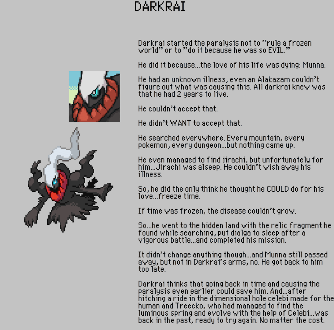 >>58870469>>58870475Reminder there's no real reason to play time/darkness over Sky.inb4 munchlax starter, just skytemple whatever starters you want at this point