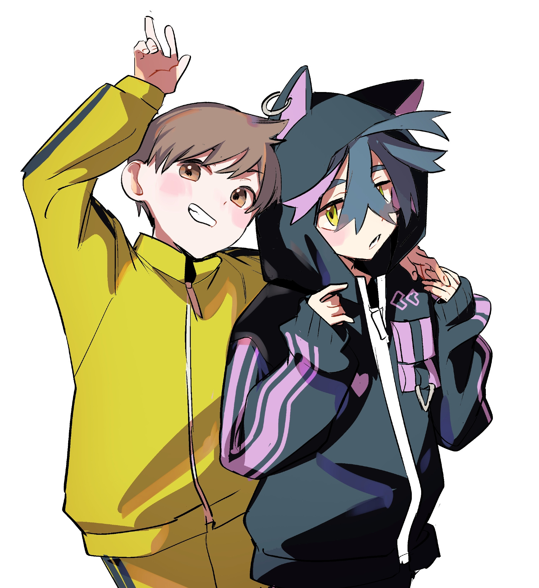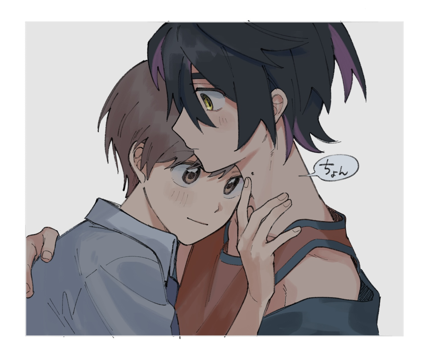 >>58870874Hot. His brain getting overwhelmed from too much (never enough) affection, unable to decide who's his favourite (both)...