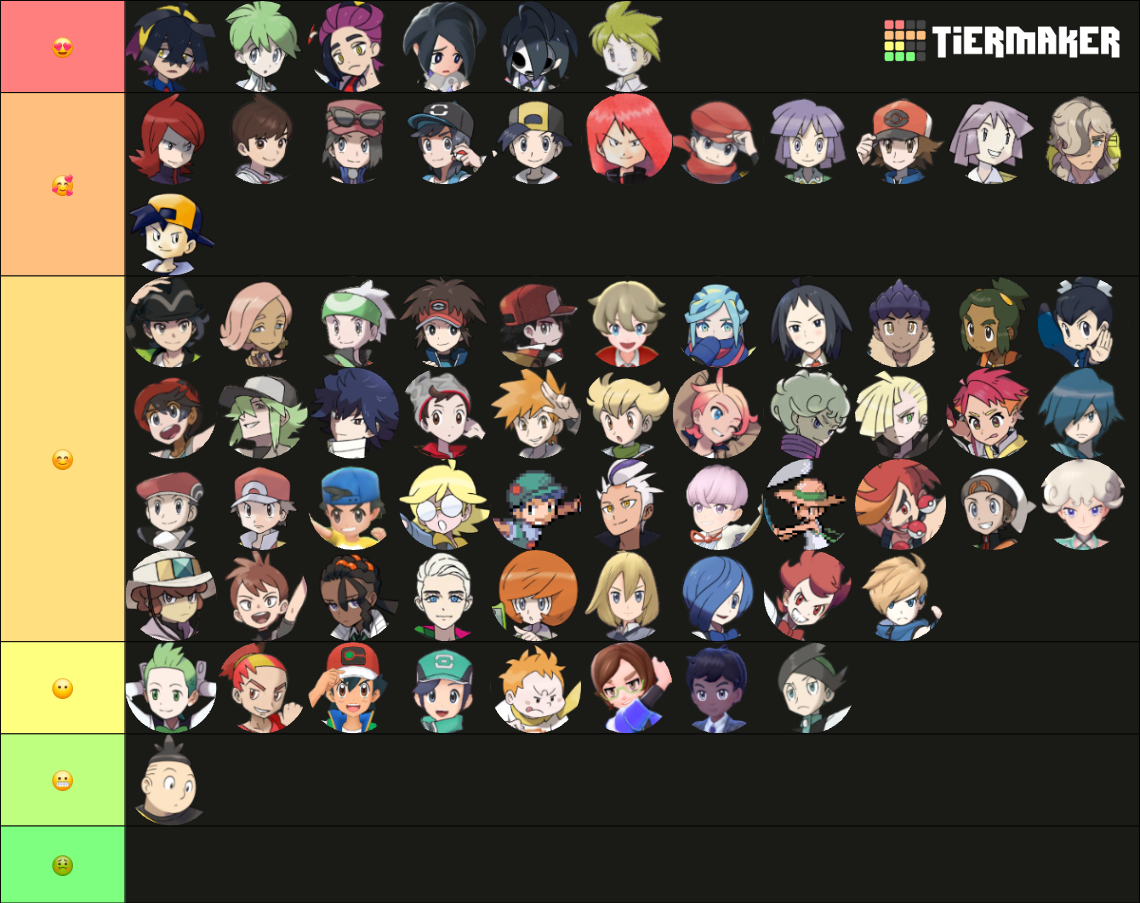 hello fellow pokeboy lovers, i made a tiermaker with EVERY single male pokémon character from the mainline games, including trainer classes, etchttps://tiermaker.com/create/core-series-pokmen-and-pokboys-18703215